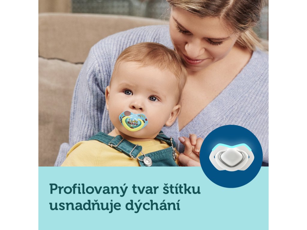 Speciálisan profilozott, lapos pajzsforma - csökkenti az érintkezést a baba arcával és minimalizálja az irritáció kockázatát.