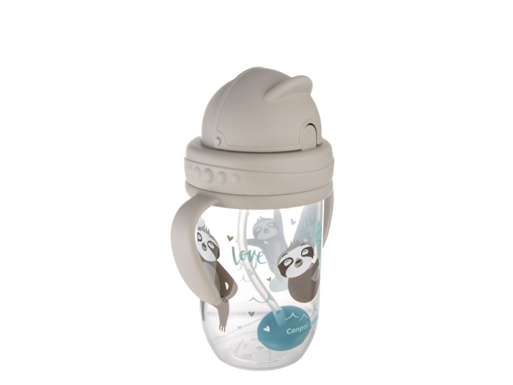 Canpol babies Szívószálas, súlyozott, nem folyó bögre 270 ml 6 hó+ Exotic Animals szürke