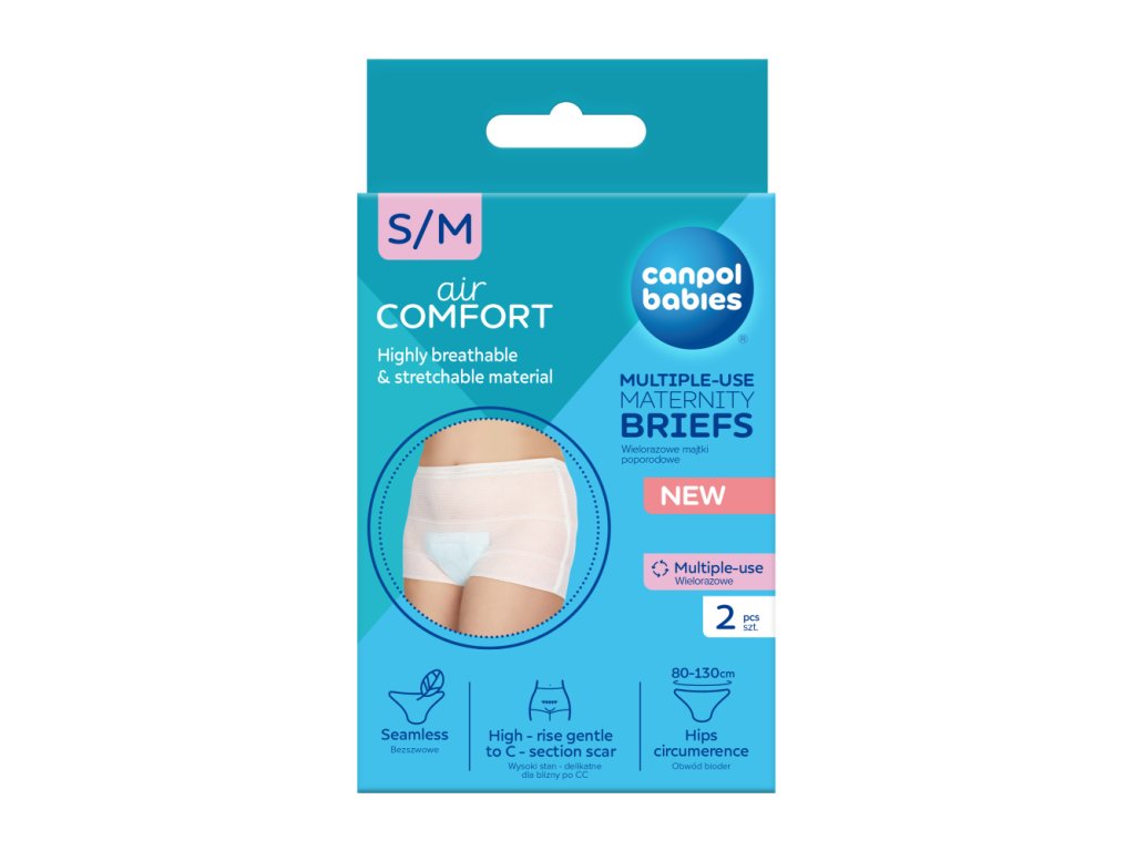 A Canpol babies hálós betétes bugyi kifejezetten a nők számára készült a szülés utáni időszakban, különösen a szülés utáni első napokban. Hálós anyagból készültek, amely nem irritálja a bőrt és lehetővé teszi a levegő szabad áramlását. A légáteresztő szülés utáni fehérnemű megkönnyíti és felgyorsítja a sebgyógyulást, mind a fiziológiás szülés, mind a császármetszés után. A hálós szülés utáni bugyik tökéletesen a helyükön tartják a szülés utáni betétet, és biztosítják a kényelmes használatot. Nagyon rugalmasak, puhák és varrásmentesek. A magas derékrész kíméletes a császármetszés utáni heghez. Az S/M méret 80-tól kb. 130 cm-es csípőbőségű nők számára alkalmas. A Canpol babies hálós szülés utáni bugyik többször használhatók és moshatók. A csomag 2 darabot tartalmaz.