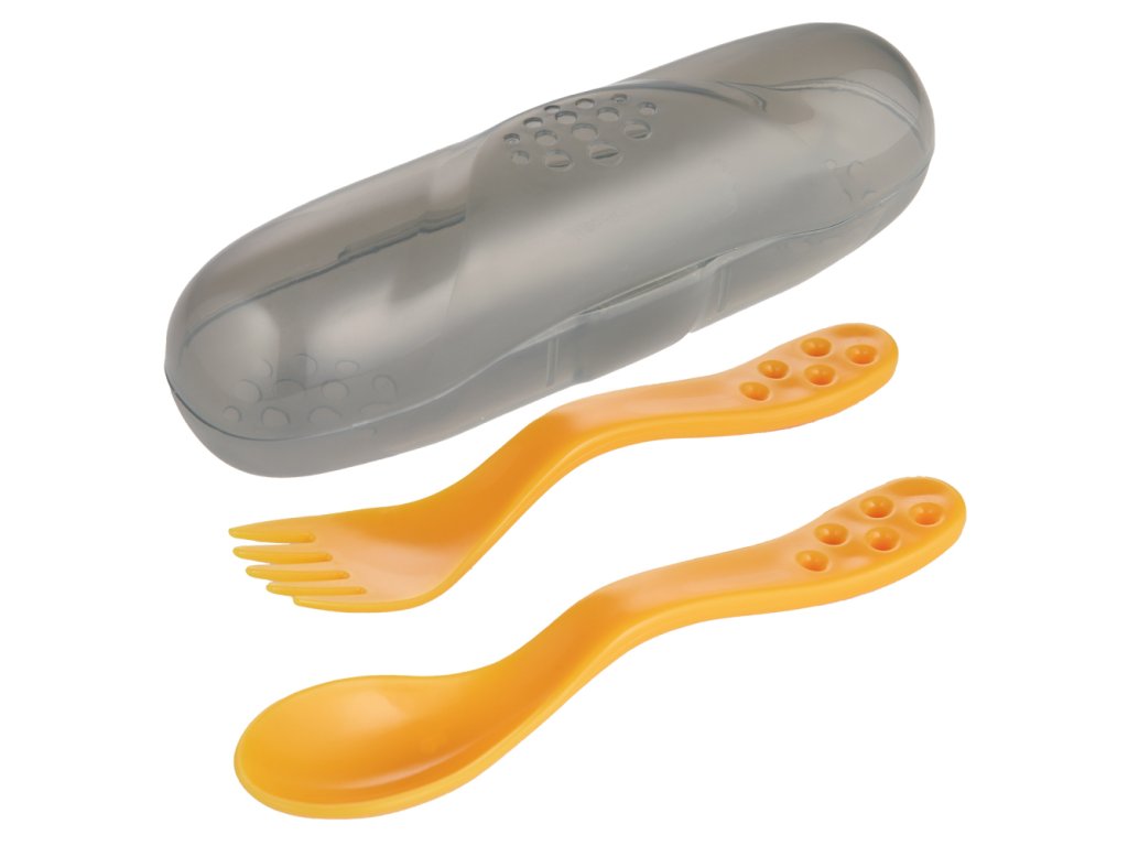 Evőeszközkészlet, amely ideális a kisgyermek etetéséhez és az önálló evés megtanulásához. Biztonságos, BPA-mentes anyagból készült. A kanalak lekerekített szélei nem irritálják az ínyt. Az evőeszközök praktikus tokban vannak tárolva, amely lehetővé teszi, hogy magával vigye őket sétálni vagy utazni. A készlet tartalmaz egy villát és kanálakat. 12 hónapos kortól ajánlott gyermekeknek.