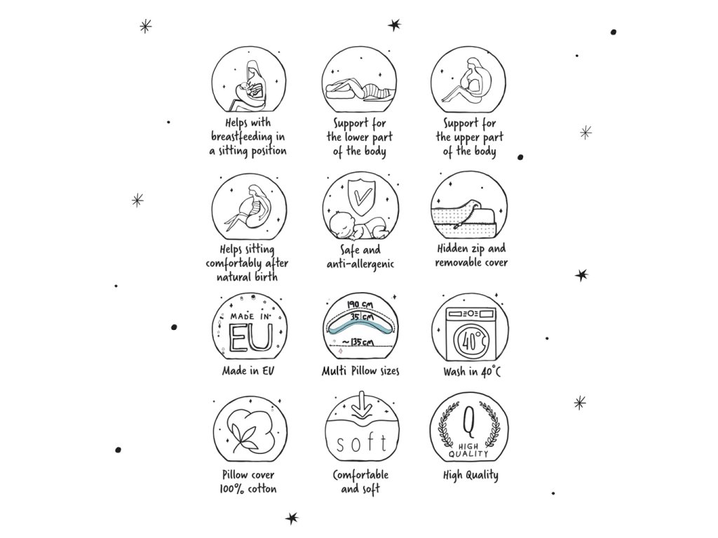 Cebuszka Multi multifunkciós párna terhes nők, fiatal szülők és gyermekek számára.