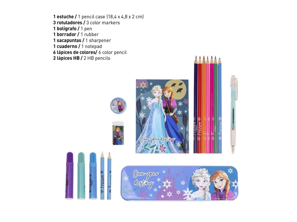 Frozen kreatív készlet Támogassa gyermeke kreativitását Üdvözöljük a színek és a végtelen szórakozás világában! A Frozen kreatív készlettel, amely ideális a kis művészek számára, a képzeletnek nincsenek határai. A gyerekek nemcsak rajzolhatnak és írhatnak, hanem saját kezűleg kiszínezhetik kedvenc Elza és Anna motívumú vázlataikat is!Ez az eredeti készlet ideális otthonra, iskolába vagy kreatív ajándéknak, amely minden gyermek arcát felragyogtatja.Ajándékozzon egy színekkel teli világot Frozen motívum – a gyerekek kedvenc mesefiguráiSzínes ceruzák és filctollak rajzoláshoz és íráshozKifesthető füzet Frozen motívumú vázlatokkalTolltartóTovábbi kreatív kiegészítőkFejleszti a kreativitást és a finommotoros készségeketEsős napokon vagy hosszú utakon is szórakoztató
