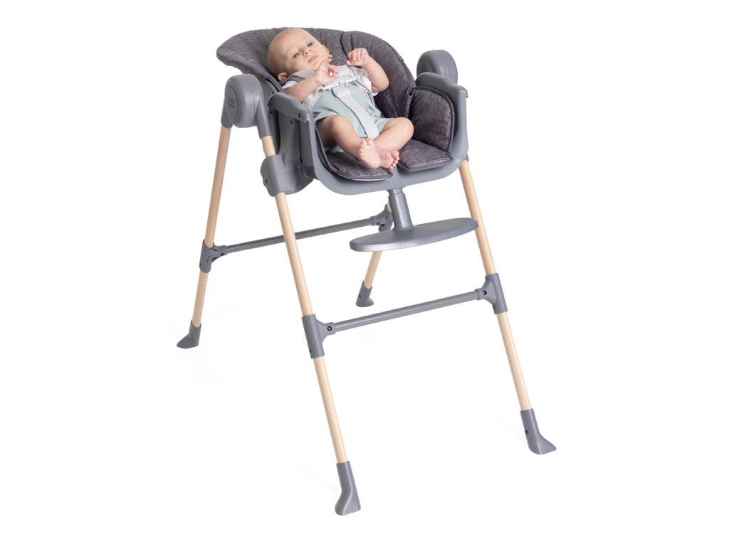Az etetőszék 7 különböző magassági pozícióba állítható, így alkalmazkodik az aktuálisan szükséges magassághoz. A háttámla 3 pozícióba állítható, egészen a teljes lefekvésig. A lábtartó is állítható a gyermek teljes kényelme érdekében.