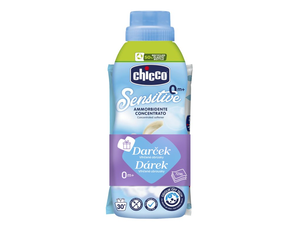 CHICCO Koncentrált öblítő Édes púder 750 ml + nedves törlőkendő 72 db ingyen