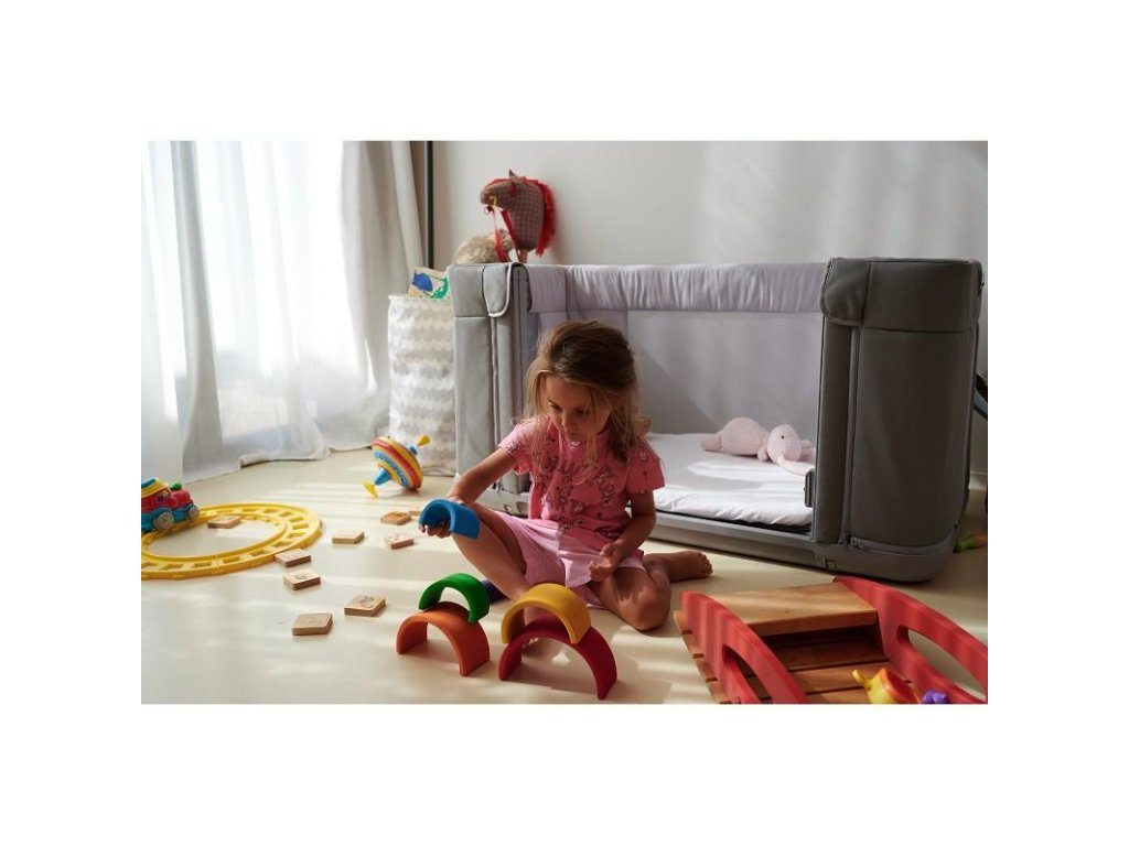 - A lábak és az oldalfal egyszerű eltávolításával egy földre helyezhető kiságyat kap, amelybe a kisgyermekek maguk mászhatnak be és ki, ezzel támogatva önállóságukat