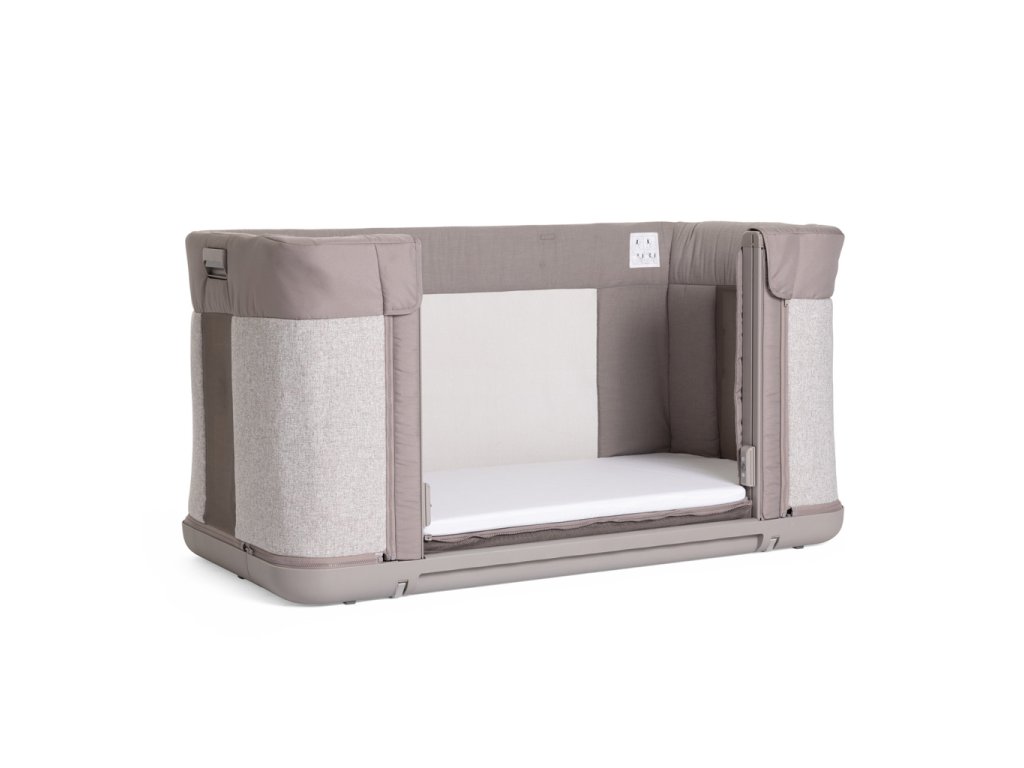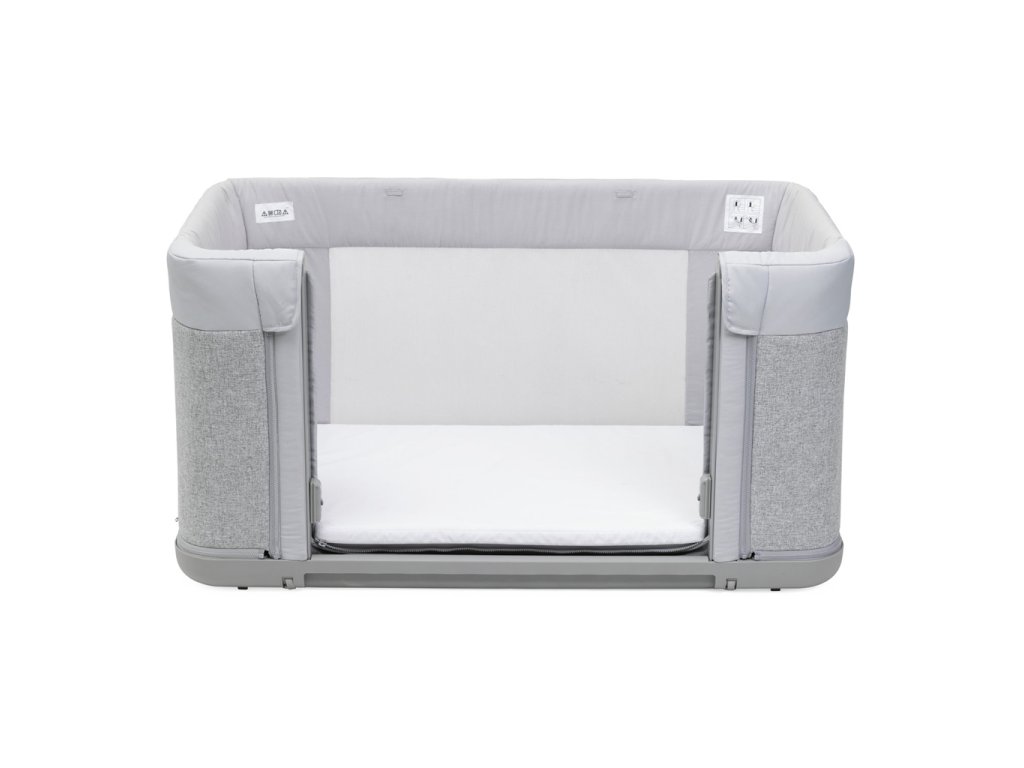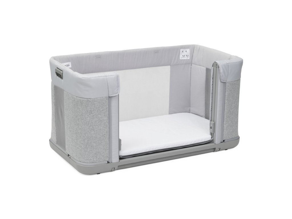 - A szabadalmaztatott rendszer megakadályozza, hogy az oldalfal leeresztve maradjon, ha a kiságy nincs teljesen rögzítve a szülői ágyhoz