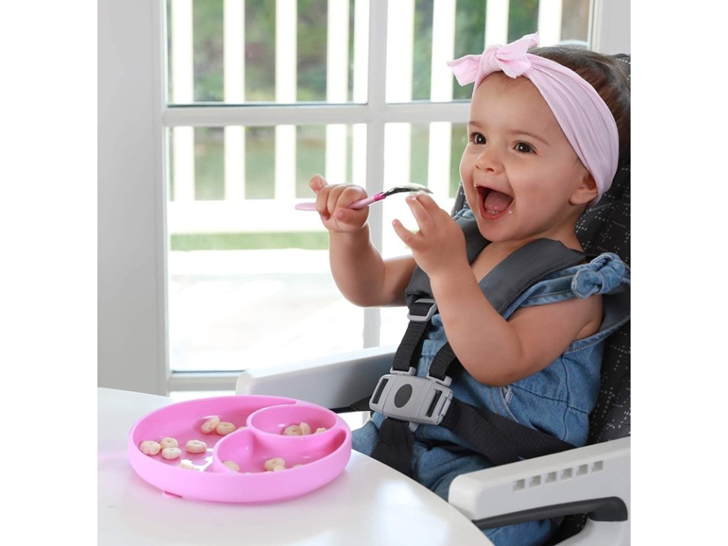 - Az alátét a tányér alján található tapadókoronggal az első önálló étkezési kísérletek során is a helyén tartja. Ez nagyon fontos a gyermekek motorikus készségeinek fejlődésében. Ennek ellenére a tányér könnyű, rugalmas és hordozható az otthonon kívüli étkezéshez is.