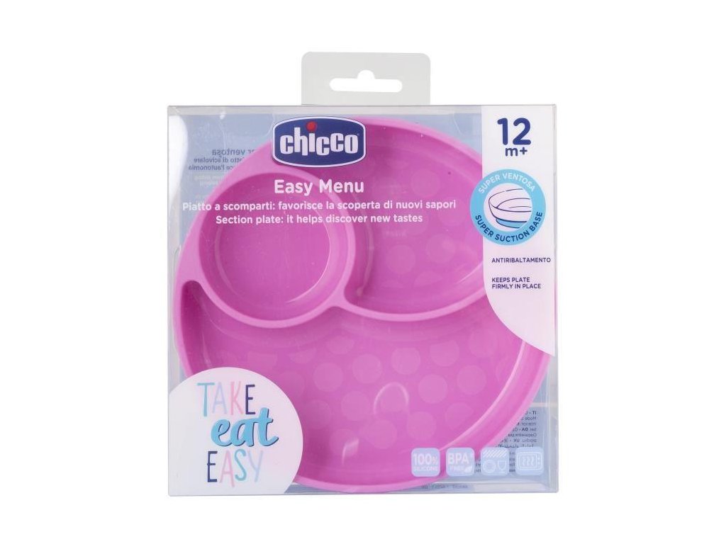A Chicco Take Eat Easy sorozatból származó szilikon tányér, amely az önálló evés elérésére szolgál, segít a gyermeknek új ízeket felfedezni. A három különálló rész megakadályozza, hogy a különböző ételek érintkezzenek egymással. Így három különböző ízt mutatunk be a gyermeknek.