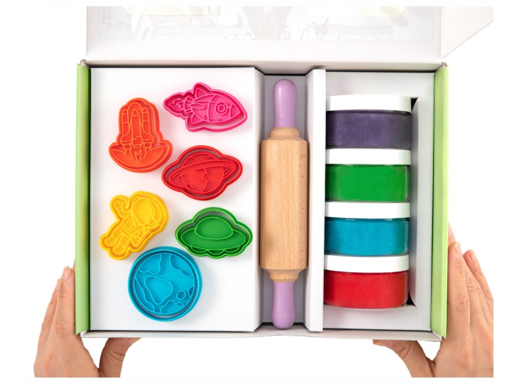 Kreatív modellező készlet Világegyetem Kreatív készlet kis kezeknek Bemutatunk egy játékos és biztonságos módot gyermeke kreativitásának fejlesztésére – Kreatív modellező készlet Világegyetem ChildGen. Ez a prémium készlet 100%-ban természetes és nem mérgező anyagokból készült, ami biztonságos és szórakoztató játékot garantál a kis alkotók számára.Alkossatok saját, fantáziával teli univerzumot! A készlet tartalma:4 színes tégely gyurma (lila, piros, zöld, kék)12 tematikus kiszúró és nyomda űrmotívumokkal 1 fa henger modellezéshezA gyerekek különféle űralakzatokat hozhatnak létre, megtanulhatják felismerni azokat, miközben fejlesztik finommotorikájukat és képzelőerejüket.Miért pont ezt a készletet válaszd? 100%-ban természetes összetételVegyszer- és tartósítószermentes: a legkisebbek számára is biztonságosSelymes textúra: könnyen formázható és kellemes tapintásúIdeális ajándék kis alkotóknak! Ez a készlet nagyszerű ajándék 3 éves kortól gyermekeknek. Akár születésnapra, karácsonyra vagy csak úgy örömszerzésre, minden kis művésznek örömet okoz. Ráadásul a természetes összetételnek köszönhetően hosszabb játék során is biztonságos.