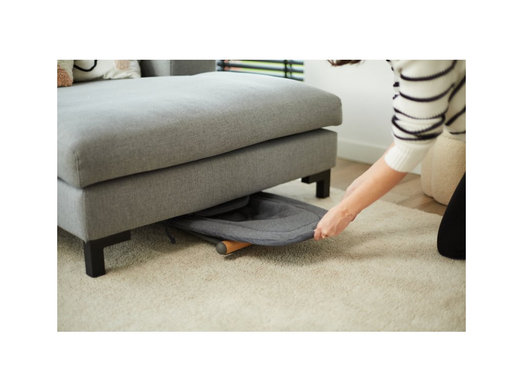 Az összecsukott pihenőszék mindössze 5 cm magas, és ha nem használja, például a kanapé alá csúsztathatja vagy a falnak támaszthatja.
