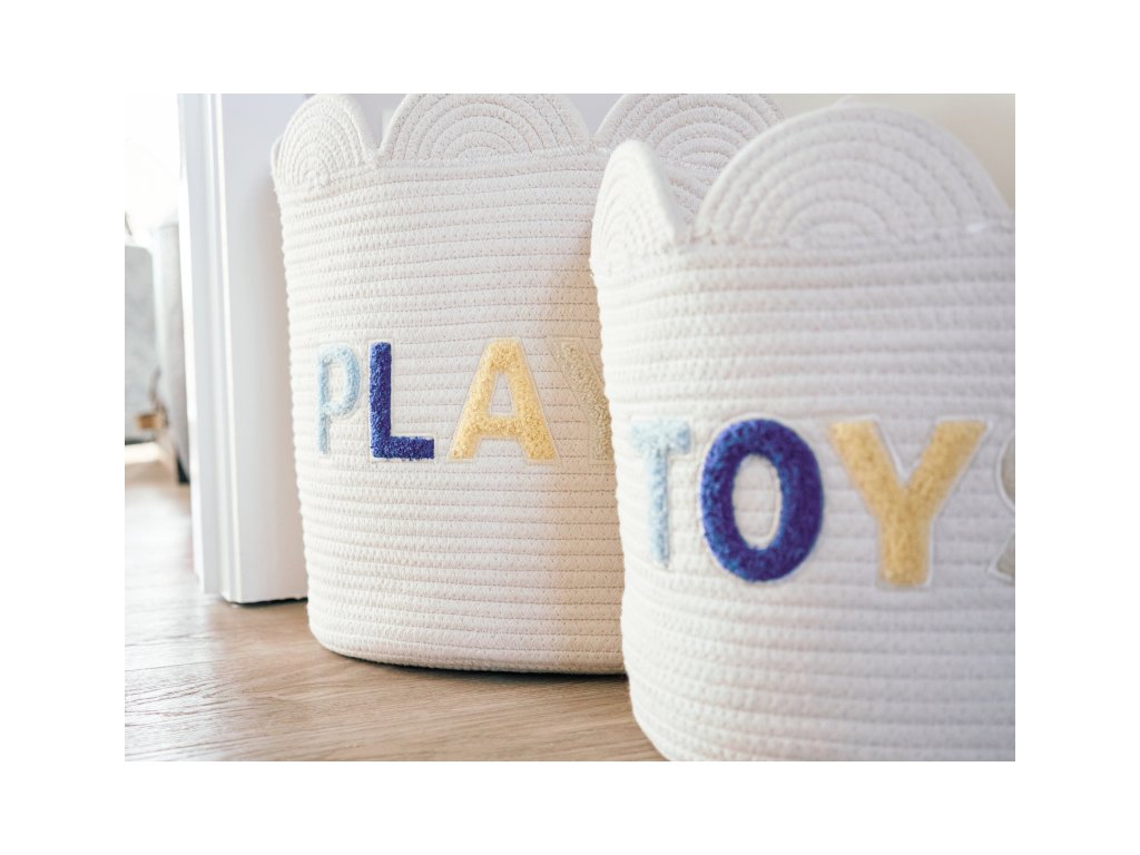 A gyönyörű tárolókosár alkalmas apró játékok, ruhák stb. tárolására. A kellemes textil anyagból készült kosár gyengéd dekorációvá válik a gyerekszobában.