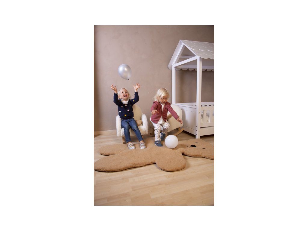 A puha játszószőnyeg egy hatalmas plüssmackó formájában kellemesebbé teszi a gyermek játékát a földön, és egyben gyönyörű dekorációként is szolgál a gyerekszobában.