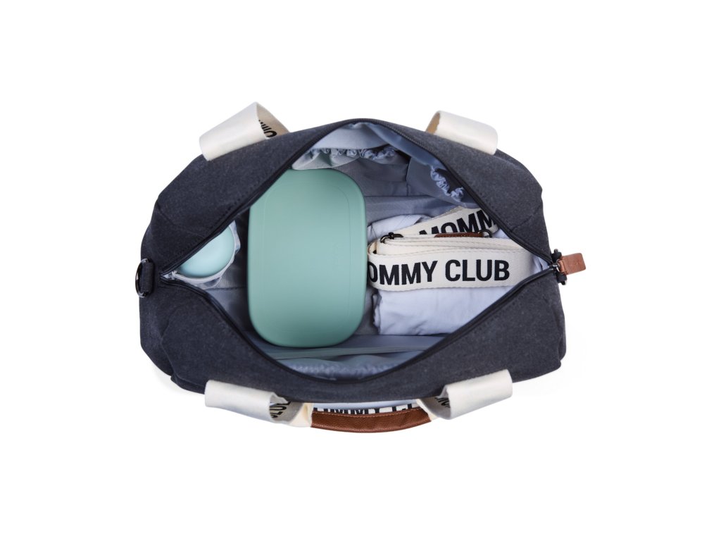 A stílusos Childhome Mommy Club pelenkázótáska tökéletes arra, hogy egyszerűen és átláthatóan tároljon mindent, ami a babával való sétákhoz és kirándulásokhoz szükséges. A belső elrendezés egy termoizolációs zsebet kínál a palack számára és elasztikus zsebeket a nedves törlőkendők, pelenkák, tartalék ruhák és hasonlók tárolására. A csomag tartalmaz egy pelenkázó alátétet is.