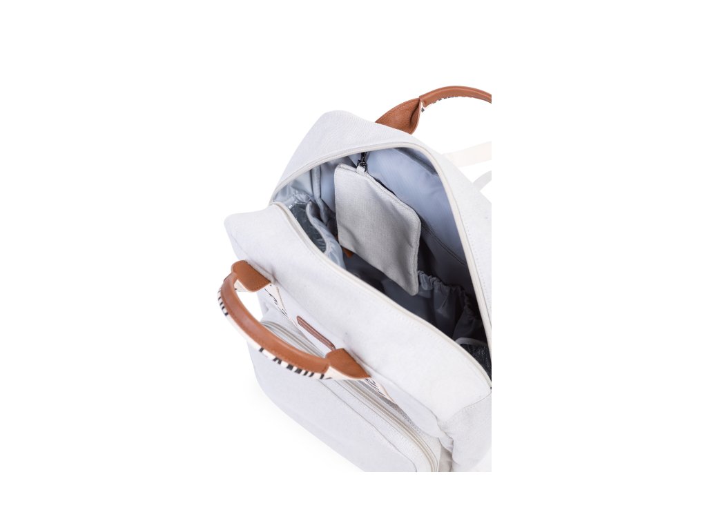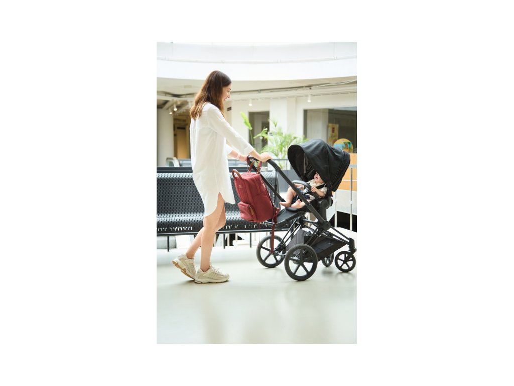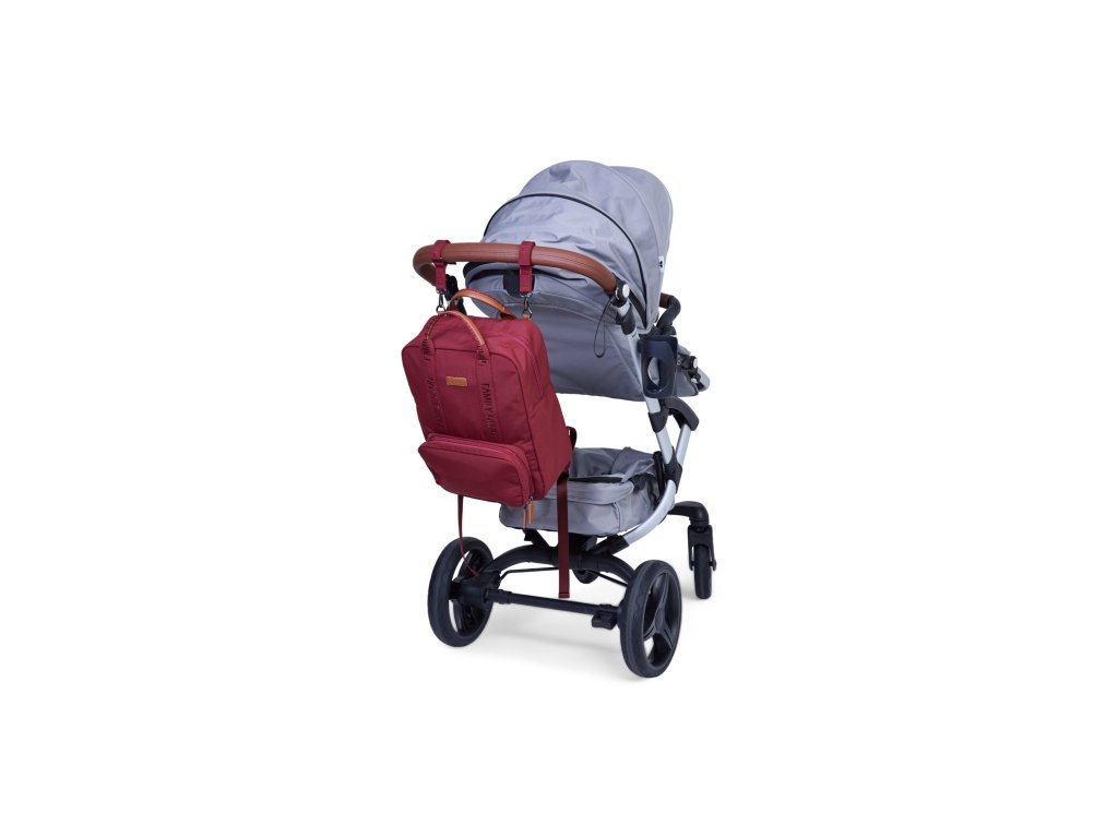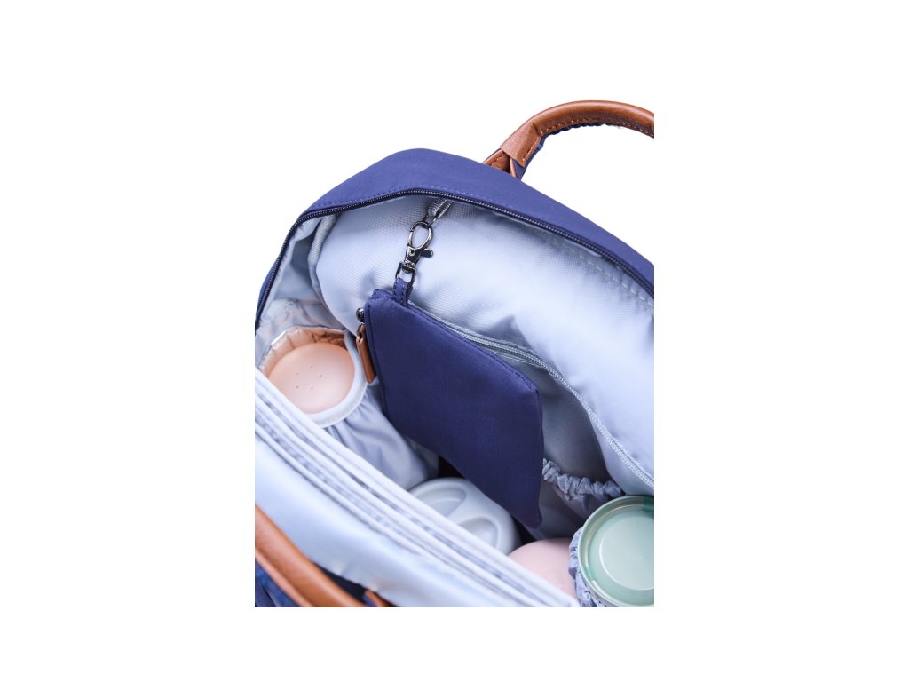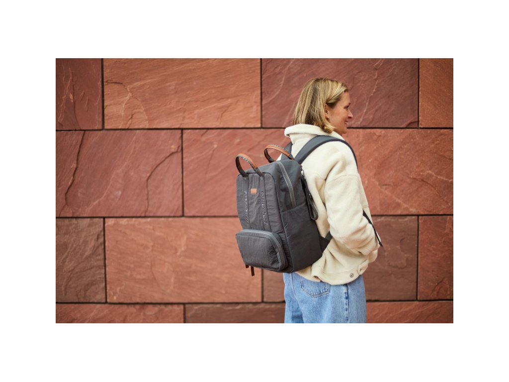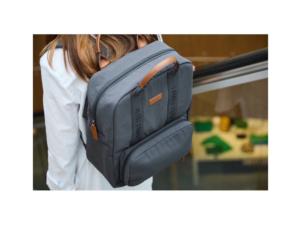 A hátizsák része egy pelenkázó alátét és termoizolációs zsebek a palack számára. A hátizsák tartalmának áttekinthető elrendezését számos belső és külső zseb és fogantyú garantálja. A speciális nedves törlőkendő zsebnek köszönhetően a törlőkendők mindig kéznél vannak, használatra készen. A babakocsi fogantyúi lehetővé teszik a hátizsák felakasztását a babakocsi fogantyújára, a bőrönd kihúzható fogantyújára való rögzítés pedig megkönnyíti az utazást a nyaralás során.