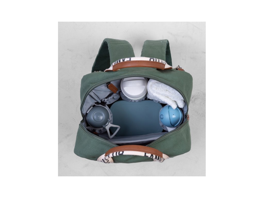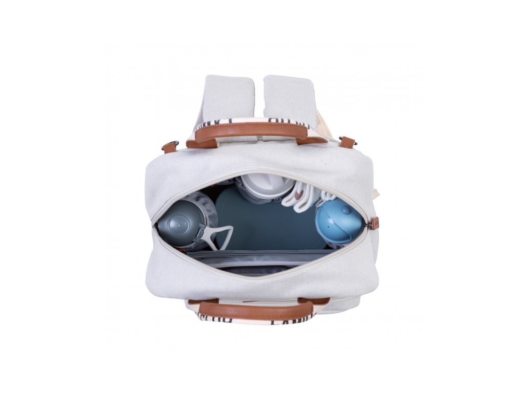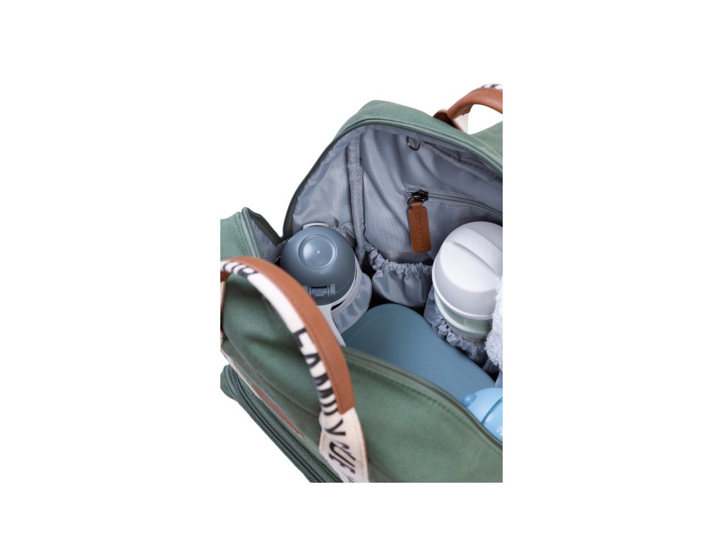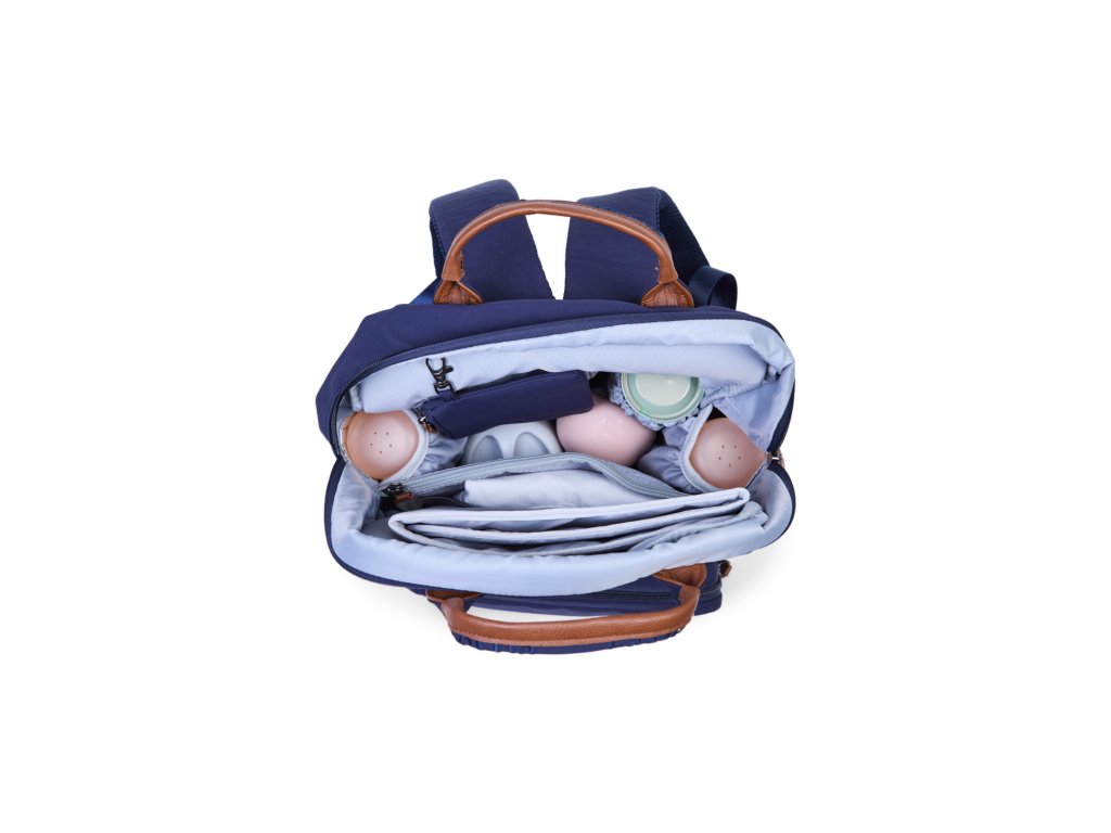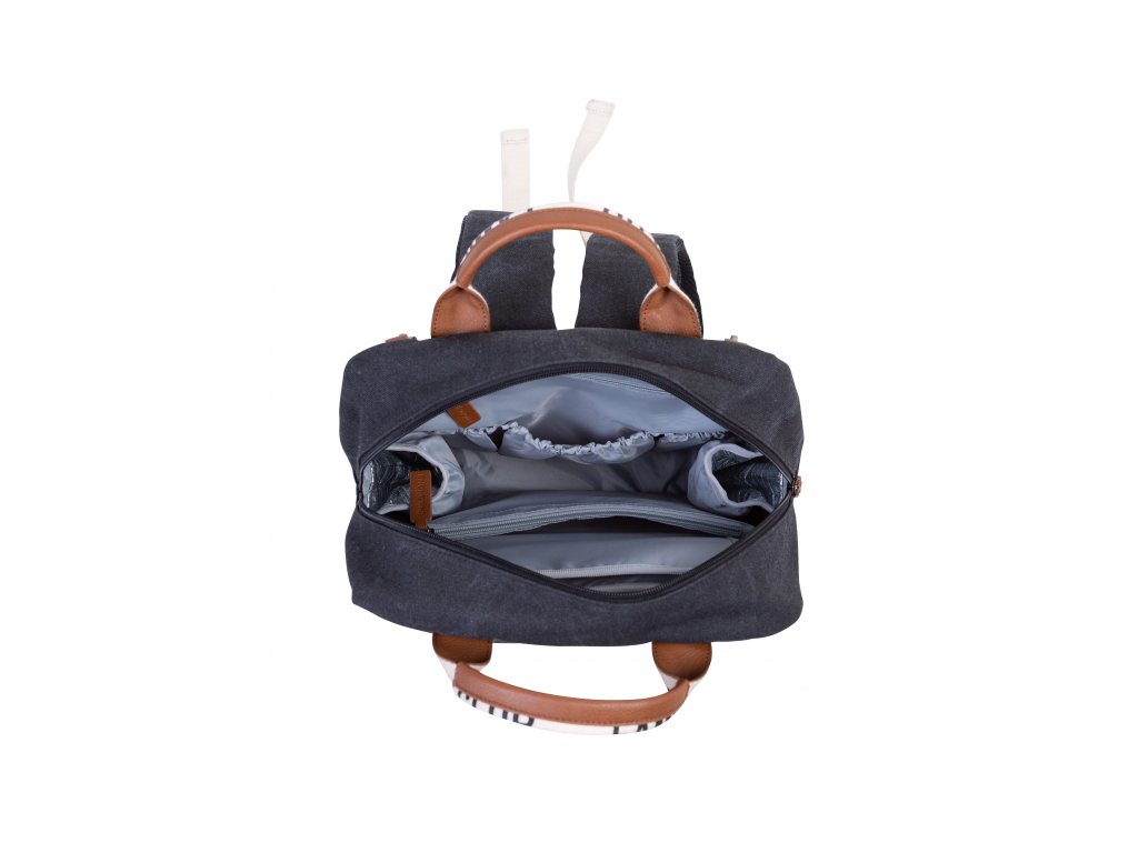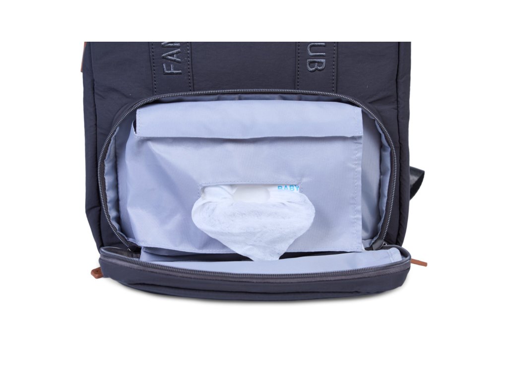 A hátizsák része egy pelenkázó alátét és termoizolációs zsebek a palack számára. A hátizsák tartalmának áttekinthető elrendezését számos belső és külső zseb és fogantyú garantálja. A speciális nedves törlőkendő zsebnek köszönhetően a törlőkendők mindig kéznél vannak, használatra készen. A babakocsi fogantyúi lehetővé teszik a hátizsák felakasztását a babakocsi fogantyújára, a bőrönd kihúzható fogantyújára való rögzítés pedig megkönnyíti az utazást a nyaralás során.
