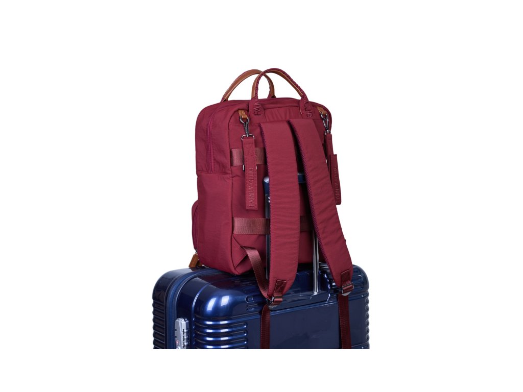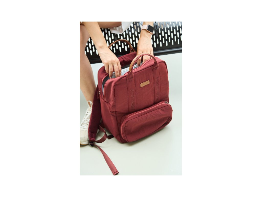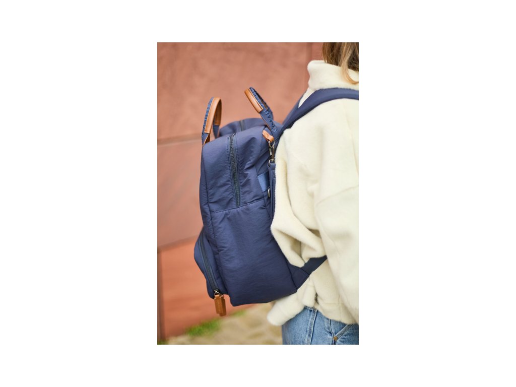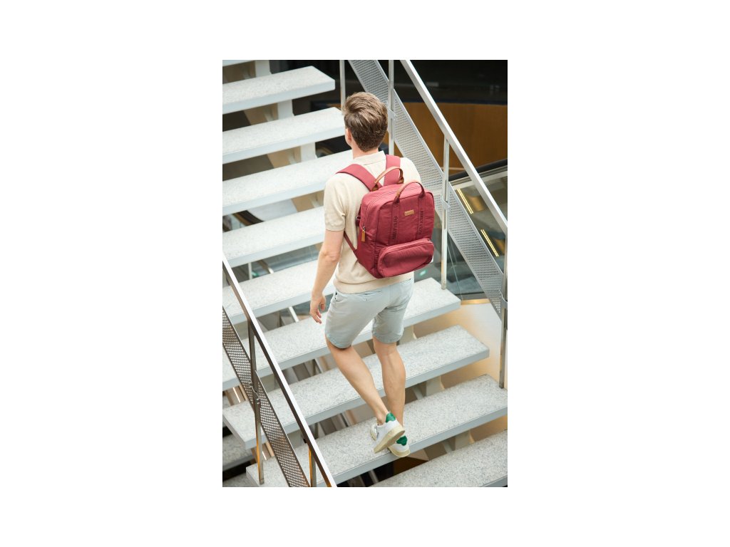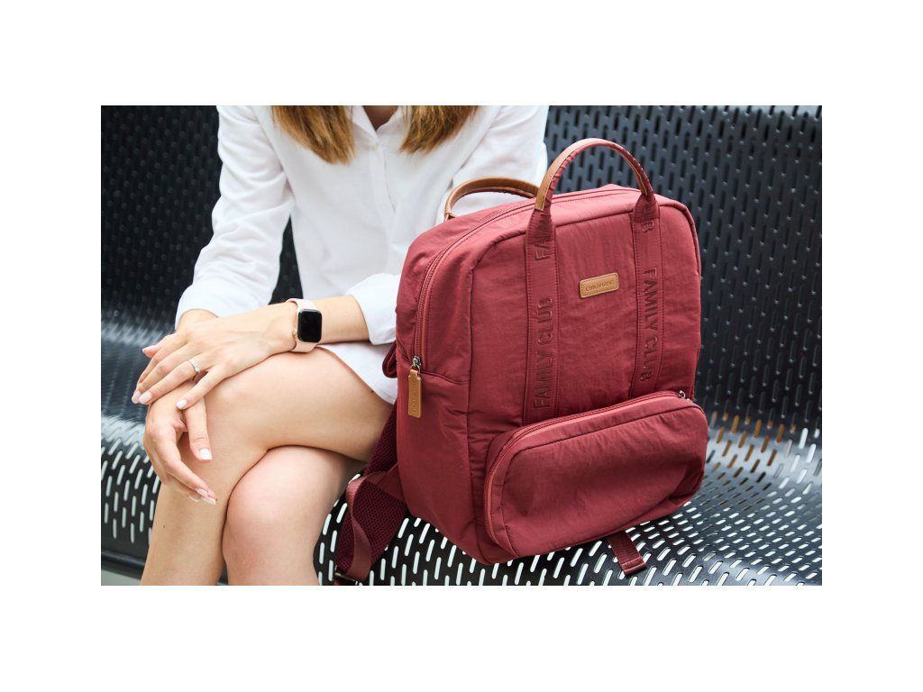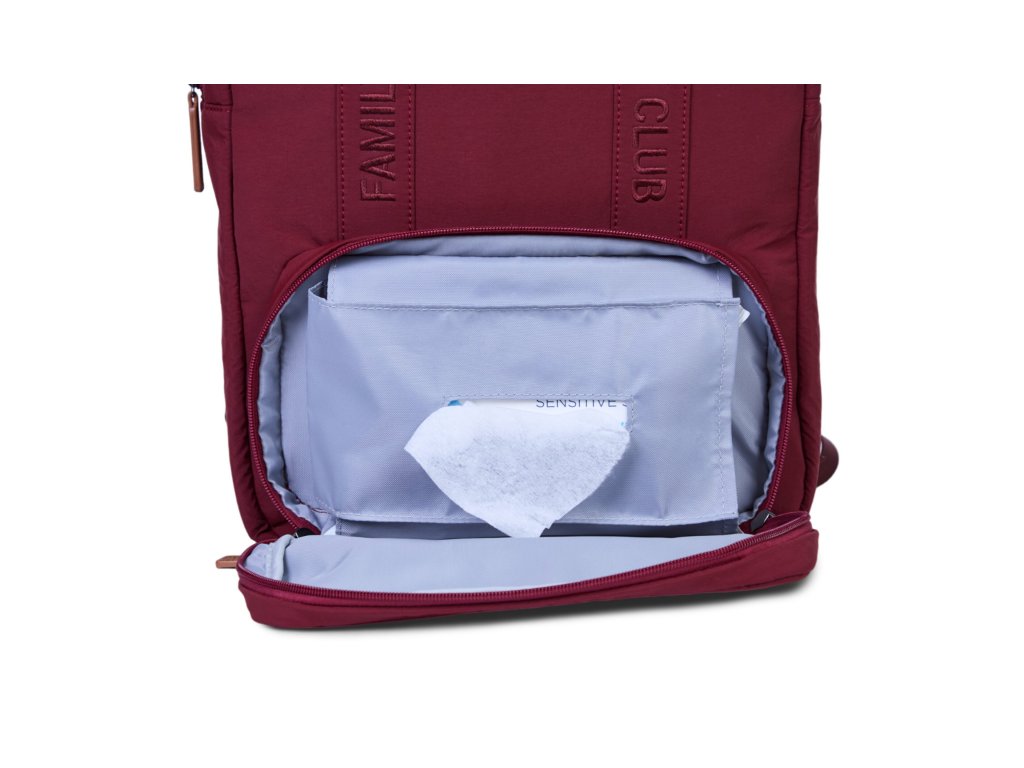 A hátizsák része egy pelenkázó alátét és termoizolációs zsebek a palack számára. A hátizsák tartalmának áttekinthető elrendezését számos belső és külső zseb és fogantyú garantálja. A speciális nedves törlőkendő zsebnek köszönhetően a törlőkendők mindig kéznél vannak, használatra készen. A babakocsi fogantyúi lehetővé teszik a hátizsák felakasztását a babakocsi fogantyújára, a bőrönd kihúzható fogantyújára való rögzítés pedig megkönnyíti az utazást a nyaralás során.