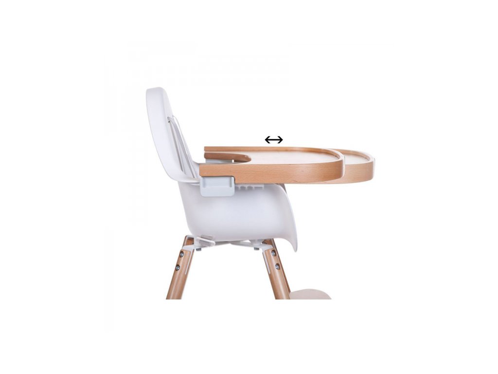A Childhome Evola 2 széktartozék bükkfából készült. Könnyen felszerelhető a szék támlájára. A pult a gyermek méretétől függően két pozícióba állítható.
