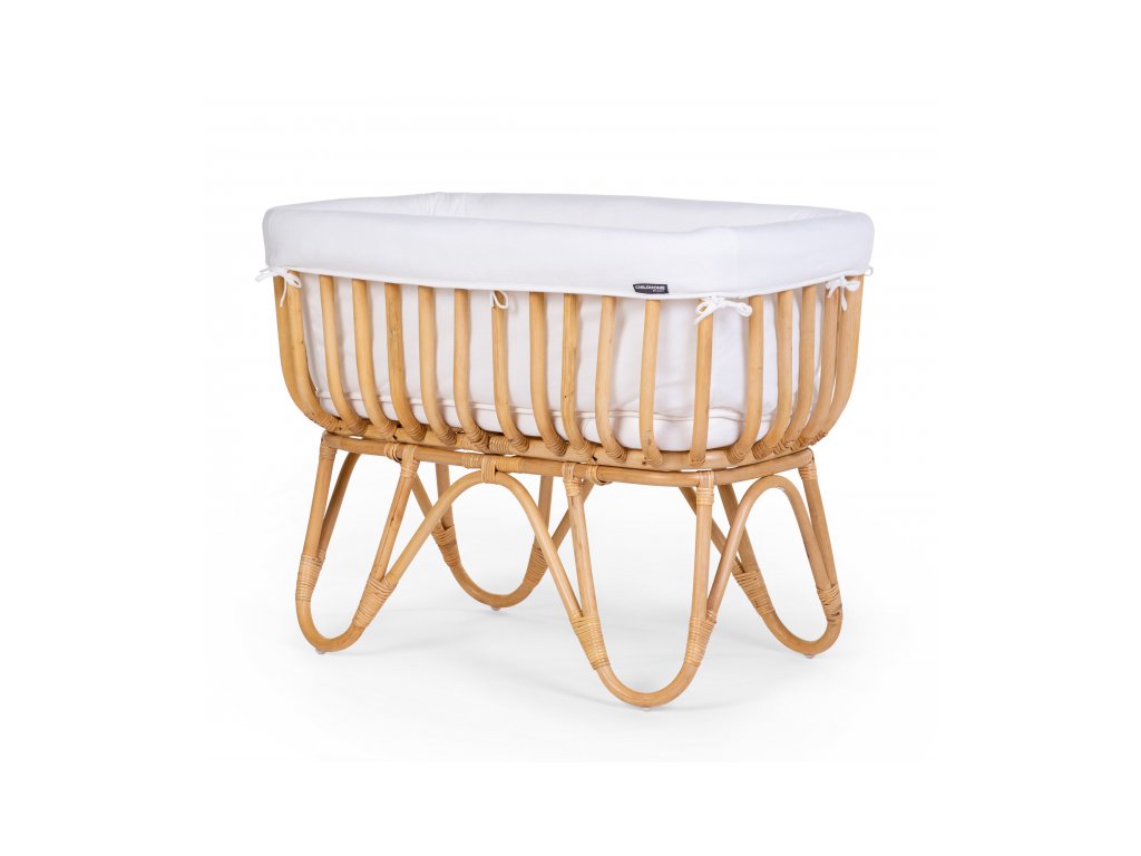 A gyönyörű, természetes kialakítású babakosár rattanból készült. Tartalmaz egy puha matracot és egy puha pamut textil huzatot, amely hangulatos és kényelmes környezetet teremt a baba számára. A kis súlyának köszönhetően a kosár könnyen hordozható, így a baba mindig szem előtt lehet.