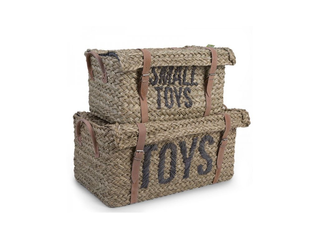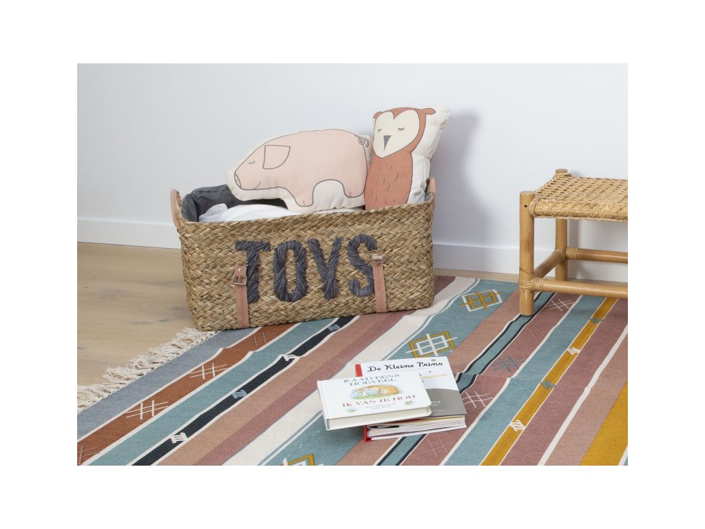 Gyönyörű szalmakosarak bőr hevederekkel és fogantyúkkal ideálisak a játékok tárolására, és egyben eredeti dekorációt alkotnak a gyermekszobában. A kosár belsejében 100% poliészter bélés található.