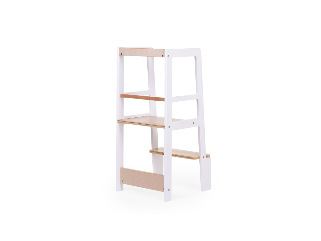 A gyönyörű fa kivitelű tanulótorony egy biztonságos fajta lépcső, amelyre a gyermekek könnyen felmászhatnak. Használhatja a konyhában, hogy gyermeke nézhesse vagy segíthessen az étel elkészítésében. Hasznos a fürdőszobában is, ahol a mosdónál használható fogmosáshoz vagy kézmosáshoz.
