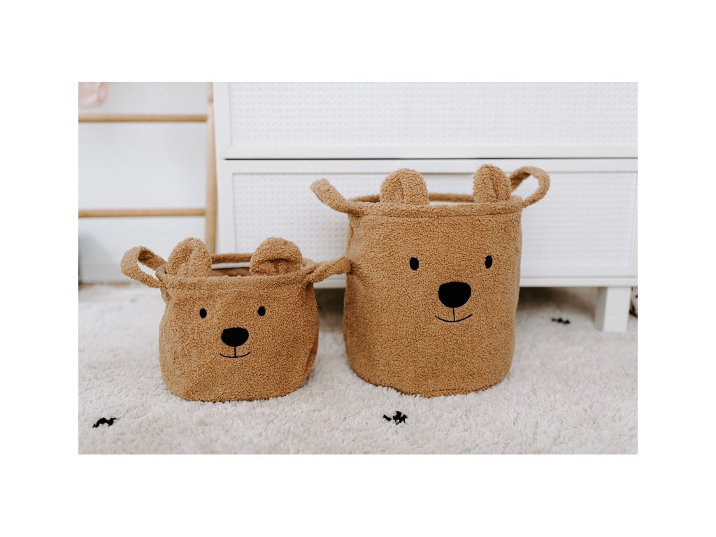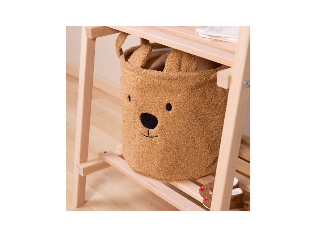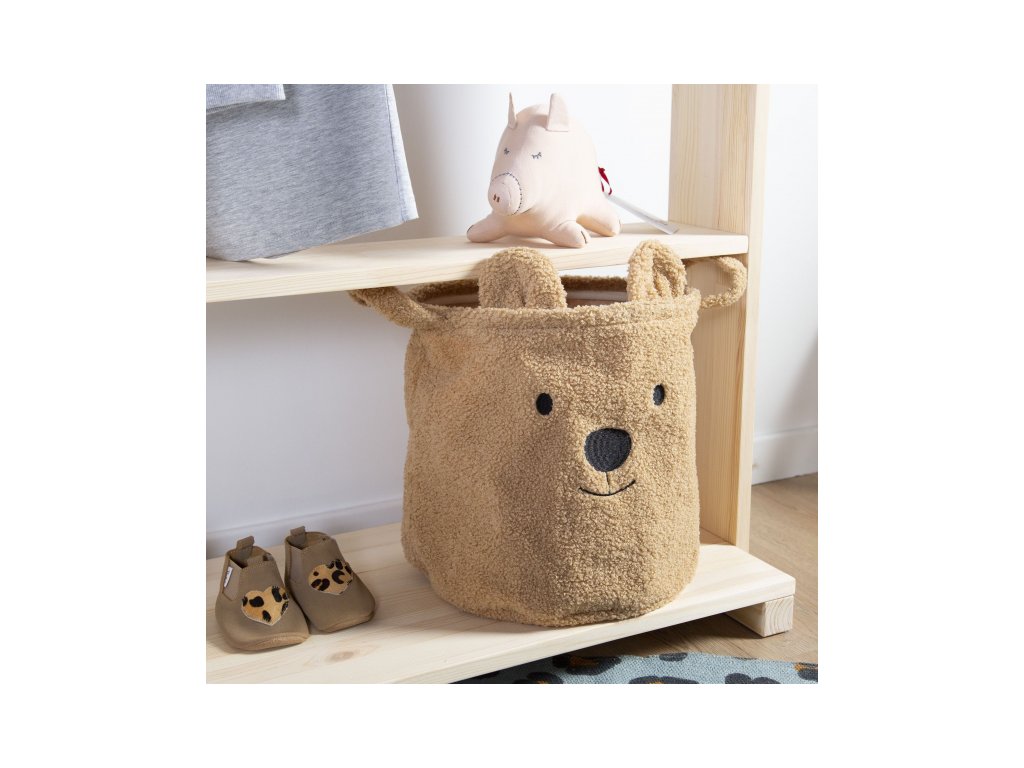 A bájos Teddy tárolókosár alkalmas játékok, ruhák és hasonlók tárolására. A kosár gyönyörű dekoráció lesz a gyerekszobában.