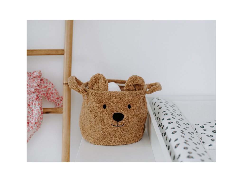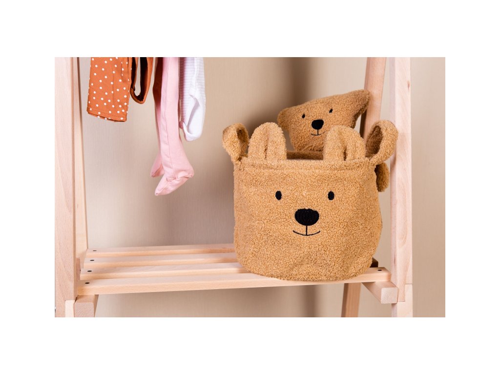 A bájos Teddy tárolókosár alkalmas játékok, ruhák és hasonlók tárolására. A kosár gyönyörű dekoráció lesz a gyerekszobában.