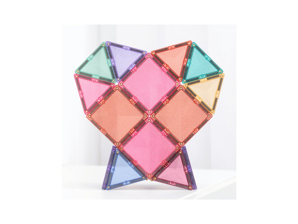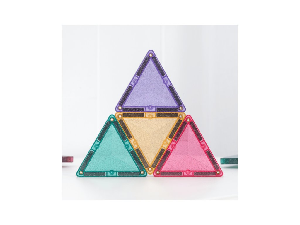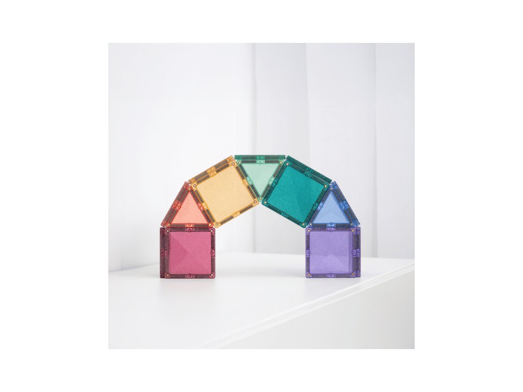 A nagy képzelőerővel és a mesék felfedezőivel szem előtt tartva tervezett, jellegzetes pasztell és élénk szivárványszínű, csodálatosan csillogó kockáink egy csipetnyi varázslatot adnak minden alkotásnak. A csomag négyzeteket, valamint egyenlő szárú és egyenlő oldalú háromszögek keverékét tartalmazza, amelyek tele vannak többszínű csillámokkal. Ez a nyitott készlet ideális csillogó várak, tornyok, hidak, állatok és sok más építéséhez!