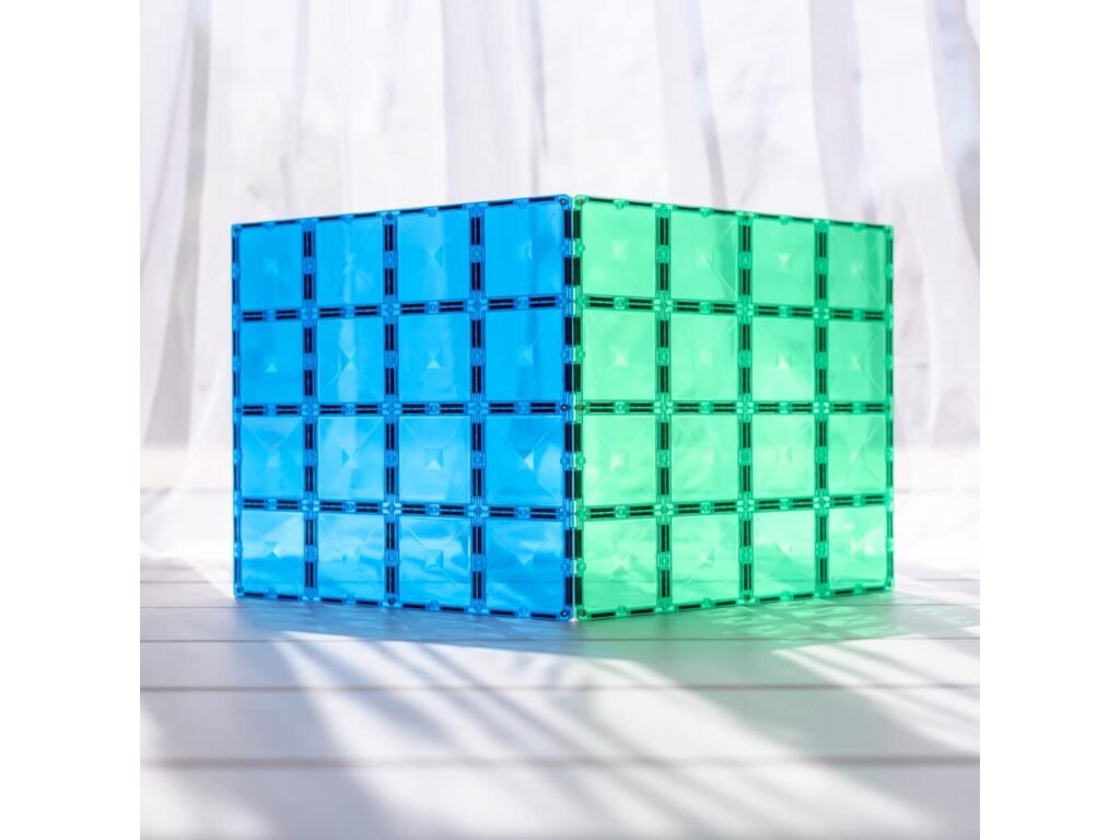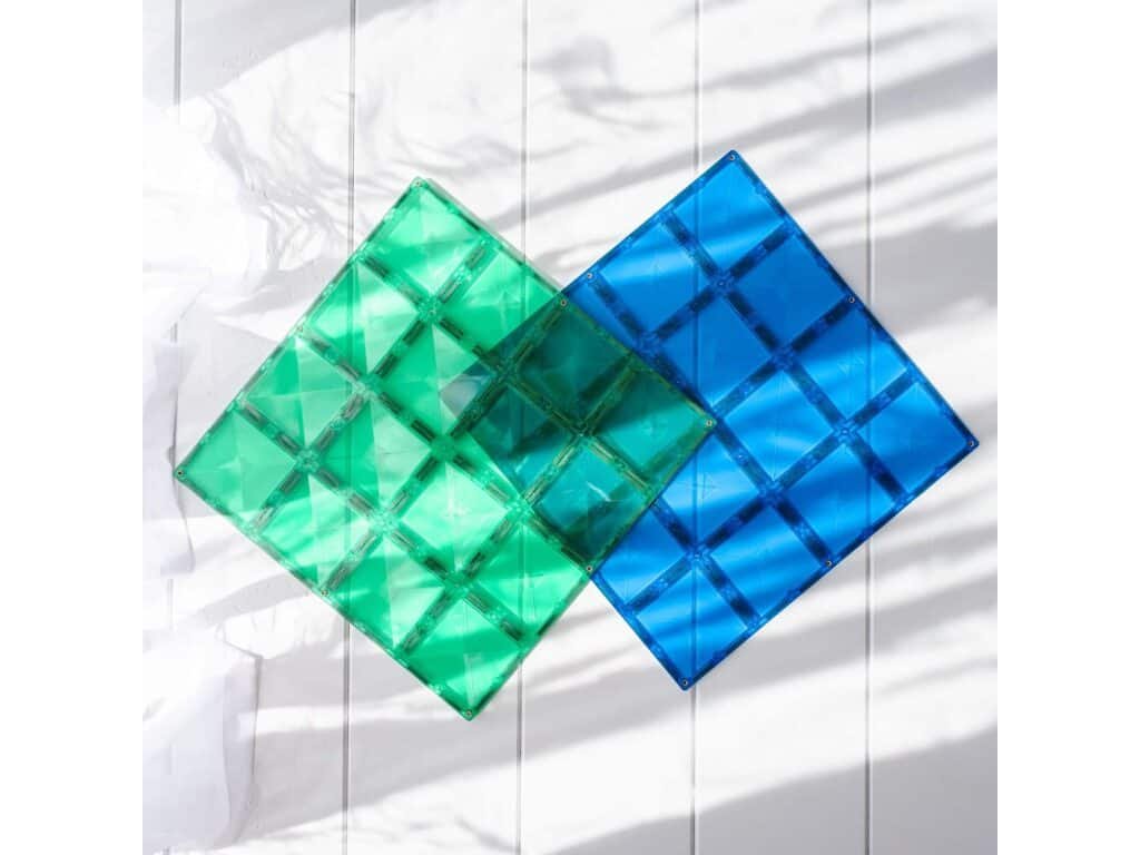 Ami a mágneses darabokkal való játékról szól, az alap minden! Segítsen a gyerekeknek életre kelteni ötleteiket, és építeni kétszer magasabb konstrukciókat a 2 alaplap csomagunkkal, amely tartalmaz egy kék és egy zöld mágneses építőlapot, 30 cm x 30 cm méretben!