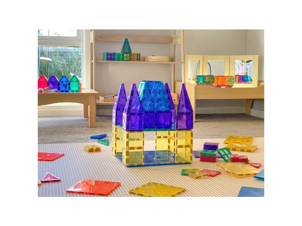 A kreativitás, a képzelet és a tanulás támogatása JÁTÉK révén – ez a csomag végtelen lehetőségeket kínál. Mint egy nagy építőlap, számos mágneses ponttal, az alaplapok kibővítik a mágneses darabokkal való játék kreatív potenciálját. Támogatják a magasabb tornyok, erősebb várak és babaházak építését, inspirálják a különböző játékformákat, mint a finommotorika fejlesztése és a mágnesesség felfedezése (darabok rögzítése mágneses pontokra), szimbolikus játék (fagylaltos/piaci standok, asztalok és székek készítése teázásokhoz), kis világ játék (darabok használata fűként, óceánként vagy égből) és labirintusok készítése, és ez csak a kezdet.