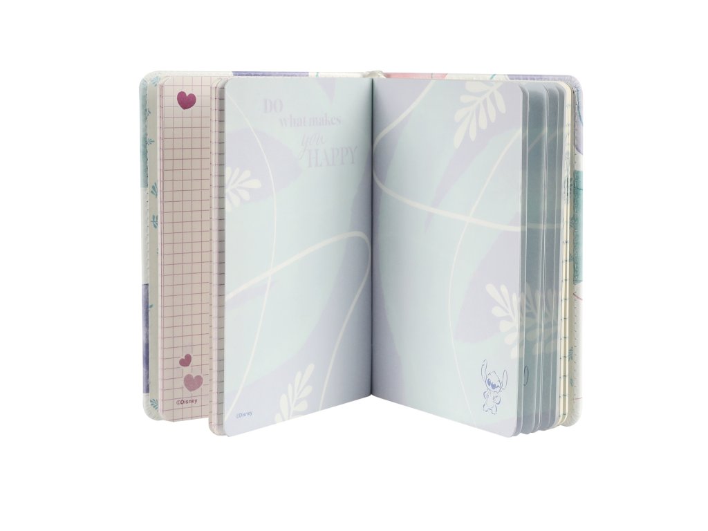 B6-os jegyzettömb 3D Stitch Pastel figurával Aranyos figurás jegyzettömb A B6-os jegyzettömb 3D Stitch figurával ideális kiegészítő minden Disney-rajongó számára. Ez a jegyzettömb nemcsak gyönyörű, hanem kellemes tapintású is. Különböző típusú oldalak, köztük vonalas, kockás és mesés hátterekkel ideális jegyzetek írásához vagy személyes mini naplóként. A Stitch-es jegyzettömb egy kis varázslatos nyári hangulatot varázsol az íróasztalodra vagy az iskolapadra. Legyen része a Disney világának ezzel az egyedi jegyzettömbbel!