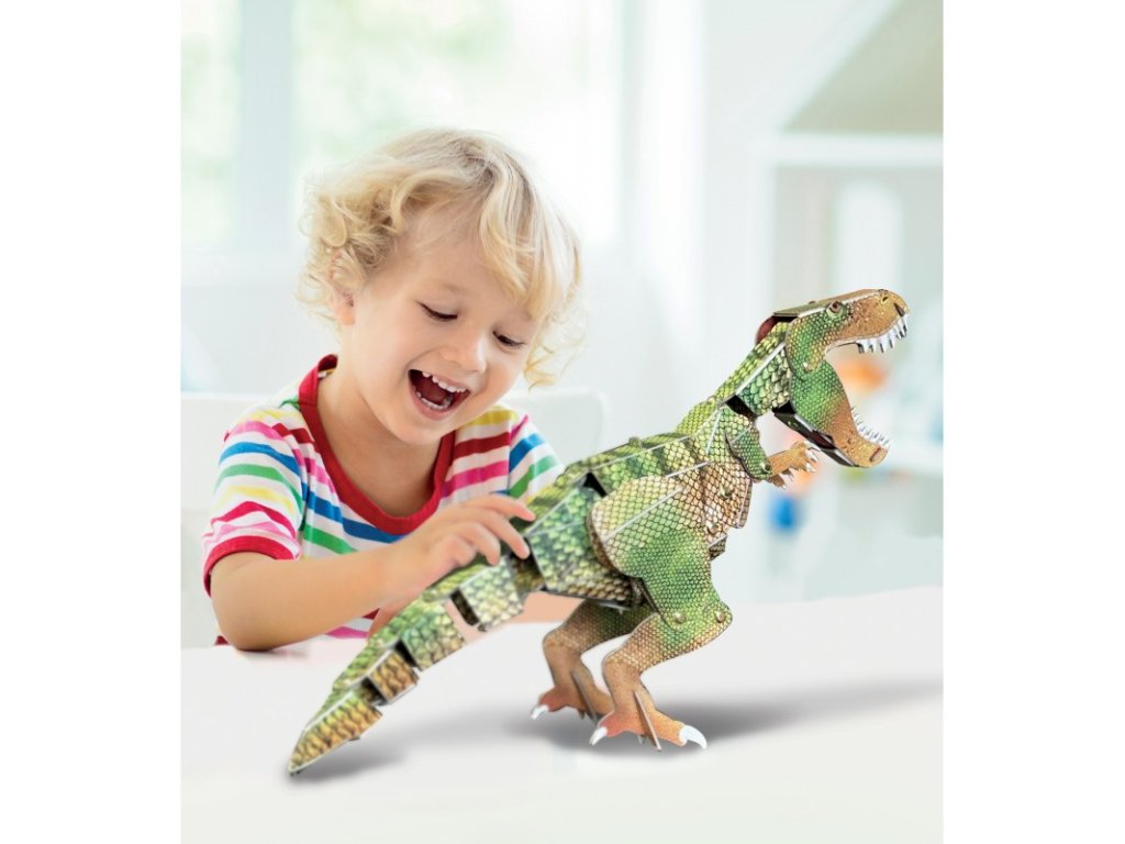 3D Dino T-Rex 6+ modell Állítsd össze a hatalmas Tyrannosaurust! A Crea Lign francia márka egyedülálló kreatív készletével a gyerekek egy 50 cm hosszú T-rex modellt építhetnek! A gyerekek először kinyomják a modell darabjait, meghajlítják őket, majd a mellékelt fémcsavarokkal az utasításoknak megfelelően rögzítik, teljesen ragasztó nélkül. Befejezés után a gyerekek a dinoszauruszt dekorációként állítják ki, vagy játékaik háttereként használják.A Crea Lign segítségével a gyerekek új technikákat tanulnak. A 3D dinoszaurusz modell építésével a gyerekek fejlesztik a finommotoros készségeiket, a logikus gondolkodásukat és a térbeli képzelőerejüket. A gyermekeknek szánt kreatív készlet minőségi és biztonságos, mint a Crea Lign francia márka összes terméke. Célja, hogy olyan kreatív kellékeket és játékokat fejlesszen, amelyek támogatják a gyermekek fejlődését, és lehetővé teszik számukra, hogy megtalálják azt, amit élveznek.