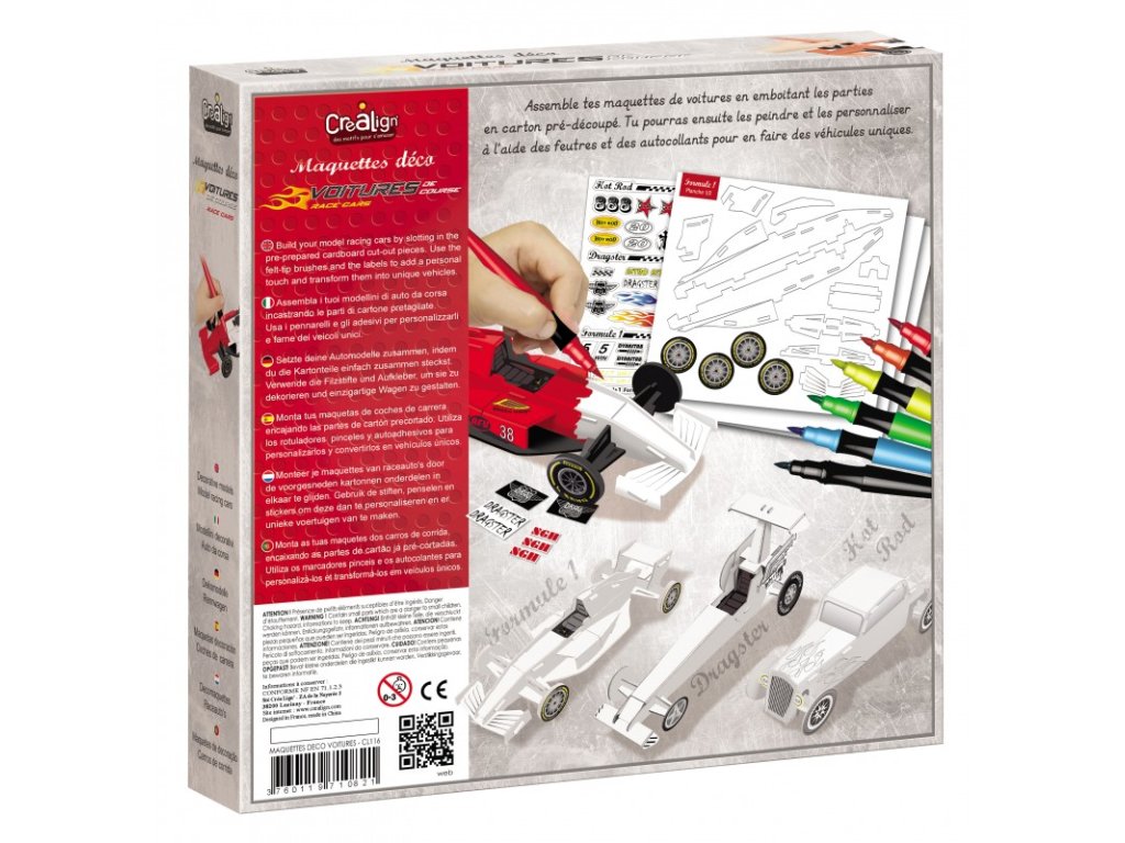3D modellek Versenyautók 6+ Készíts 3 karton versenyautó modellt! A Crea Lign francia márka egyedi kreatív készlete lehetővé teszi a gyermekek számára, hogy saját papír versenyautó modelleket készítsenek. A gyerekek először összeállítják a 3D modelleket, majd 6 vékony filctollal és matricával gyönyörűen díszítik őket. Befejezés után dekorációként állítják ki őket.A Crea Lign segítségével a gyerekek új technikákat tanulnak. A papír versenyautó modellek készítésével a gyerekek fejlesztik finommotoros készségeiket, pontosságukat és logikai gondolkodásukat. A kreatív készlet gyermekek számára kiváló minőségű és biztonságos, mint a Crea Lign francia márka összes terméke. Célja, hogy olyan kreatív kellékeket és játékokat fejlesszen, amelyek támogatják a gyermekek fejlődését, és lehetővé teszik számukra, hogy megtalálják azt, amit élveznek.