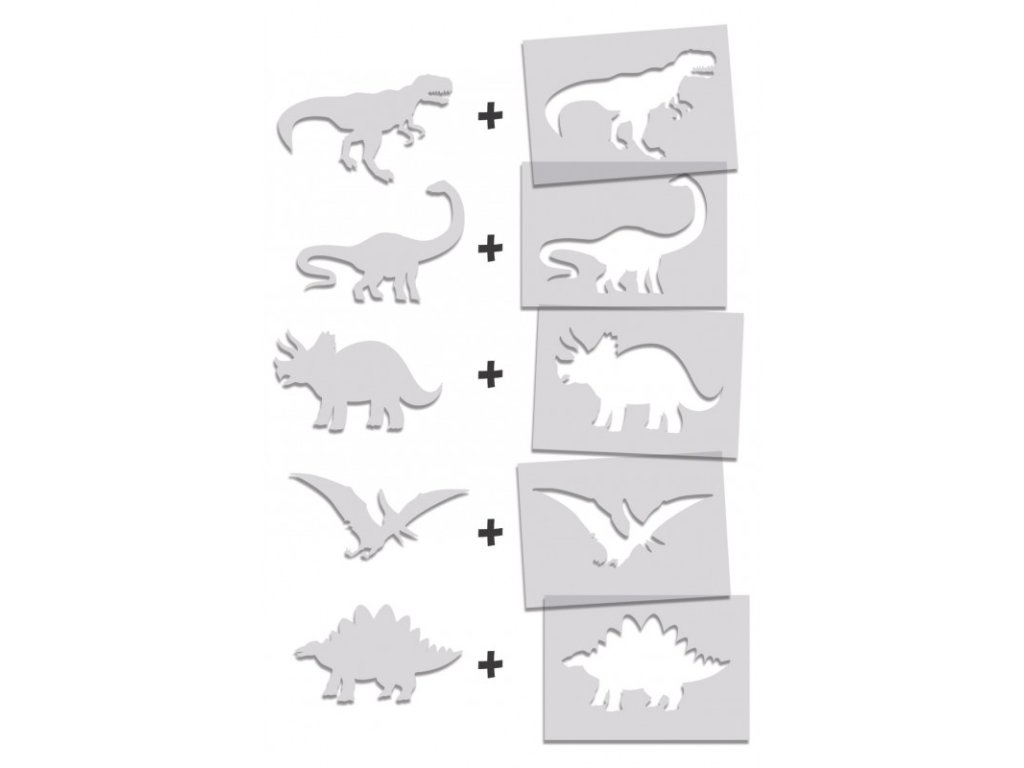 Dinoszaurusz rajzsablonok Rajzsablonok kis dinoszaurusz rajongóknak Merülj el a dinoszauruszok lenyűgöző világában a kifejezetten fiatal művészeknek és ezen érdekes állatok szerelmeseinek tervezett rajzsablonokkal. Az egyedi készlet 10 sablont tartalmaz, amelyeknek köszönhetően minden gyermek könnyen és örömmel készíthet csodálatos rajzokat.A Crea Lign kreatív készlete fejleszti a gyermekek finommotorikáját A készlet 5 sablont tartalmaz különböző típusú dinoszauruszok képeivel és 5 ellenformát, amelyek a sablonok belsejében kivágott részek, melyeknek köszönhetően a gyerekek kiegészíthetik a kép hátterét és részleteket adhatnak hozzá pontosan az elképzeléseik szerint.