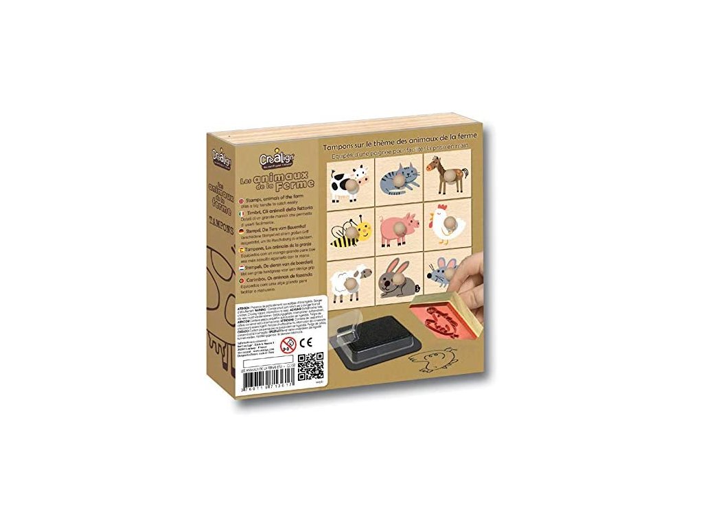 Fából készült bélyegzők fogantyúkkal Farm 9 db Készítsd el saját farmodat! A Crea Lign francia márka bélyegzőkészlete gyerekeknek 9 nagy fa bélyegzőt tartalmaz fogantyúkkal. Ennek köszönhetően a farm aranyos állataival ellátott bélyegzők jól tartják a gyerekeket, és már körülbelül 3 éves kortól alkalmasak. A csomag tintapárnát is tartalmaz fekete színnel. A gyerekek így azonnal alkothatnak!A Crea Lign segítségével a gyerekek új művészi technikákat tanulnak A gyermekbélyegzők és a velük való munka támogatja a finommotoros készségek, a gondoskodás, a képzelőerő és a kreativitás fejlesztését. A termék kiváló minőségű és biztonságos, akárcsak a francia Crea Lign márka összes többi terméke.