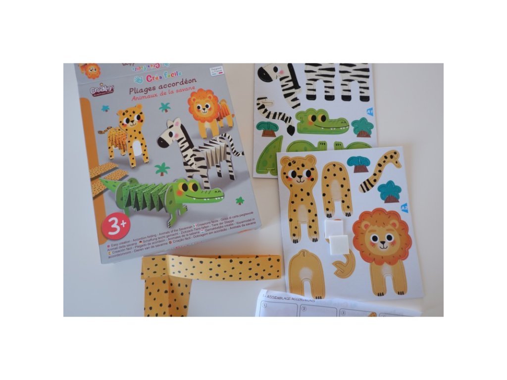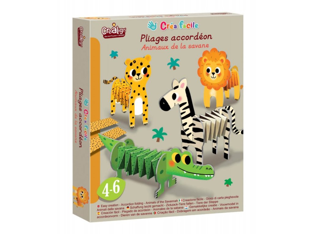 Papírból alkotás: Szavanna állatok – Készíts harmonika állatokat a szavannáról! A Crea Lign francia márka egyedi kreatív készlete megtanítja a gyerekeknek a papír harmonikák készítését. 4 szavanna állatot tartalmaz az összeszereléshez és 8 papírcsíkot a harmonikák - állati testek - elkészítéséhez. A gyerekek összeállítják az állatok figuráit, elkészítik a testüket az utasítások szerint, és a befejezés után dekorációként kiállítják őket, vagy játszhatnak velük. Nincs szükség ollóra vagy ragasztóra!A Crea Lign segítségével a gyerekek új művészi technikákat tanulnak. A papírból való alkotás fejleszti a finommotorikát, a képzelőerőt és a kreativitást. A termék nagyon ötletes és átgondolt, akárcsak a Crea Lign francia márka összes többi terméke. Célja, hogy olyan kreatív kellékeket és játékokat fejlesszen, amelyek támogatják a gyermekek fejlődését, és lehetővé teszik számukra, hogy megtalálják azt, amit élveznek.