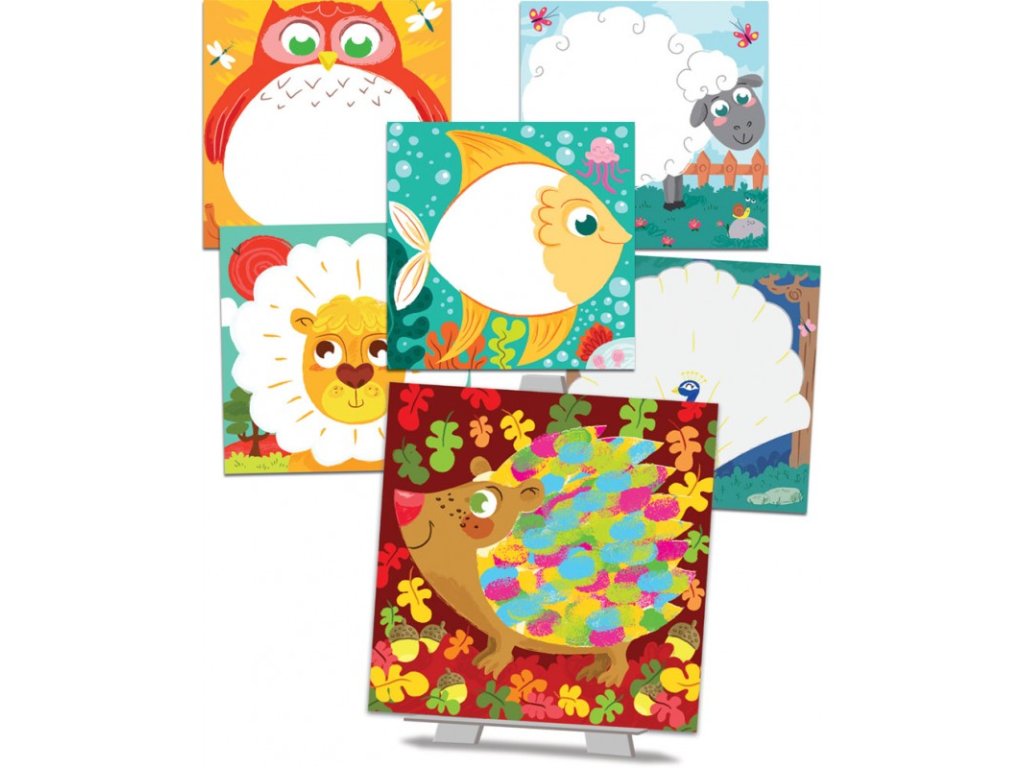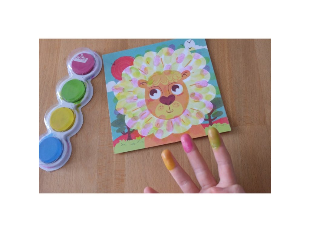 Ujjfestés Állatok 3+ Színezd ki az állatokat ujjlenyomataiddal! Kreatív készlet gyerekeknek Ujjfestés Állatok a francia Crea Lign márkától az Egyszerű képek sorozatból, már 3 éves kortól ajánlott. 6 állatképet tartalmaz a kifestéshez és egy palettát 4 színes párnával az ujjlenyomatokhoz. Nekik köszönhetően a gyerekek imádnivaló erdei állatokat színezhetnek ki gyönyörűen, csak az ujjlenyomataik segítségével. Tartalmaz 1 szivacsot a képek későbbi kiállításához és 1 törlőkendőt az ujjak letörléséhez.Nagyszerű a kreativitás fejlesztéséhez. Az ujjfestés támogatja a finommotoros készségek, a képzelőerő és a kreativitás fejlődését. A termék kiváló minőségű és biztonságos, akárcsak a francia Crea Lign márka összes többi terméke. Célja, hogy olyan kreatív kellékeket és játékokat fejlesszen, amelyek támogatják a gyermekek fejlődését, és lehetővé teszik számukra, hogy megtalálják azt, amit élveznek.