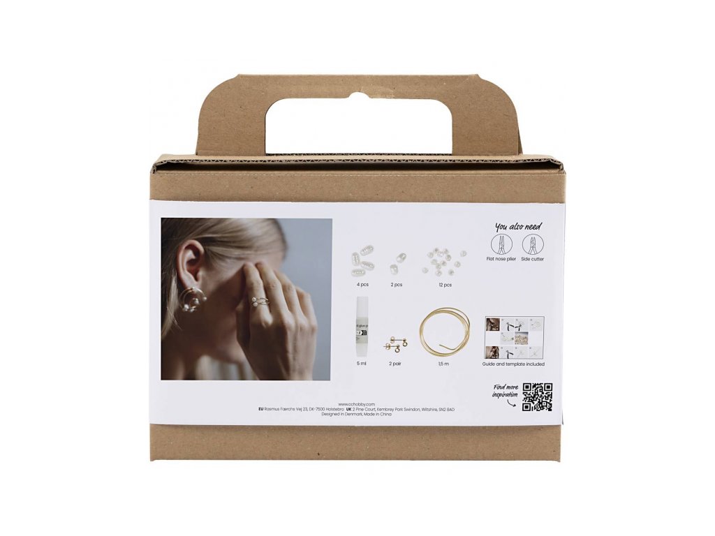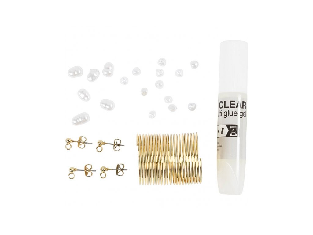 • A készletben aranyszínű ékszerdrótot, finom viaszgyöngyöket, valamint fülbevalók és gyűrű készítéséhez szükséges alkatrészeket találsz