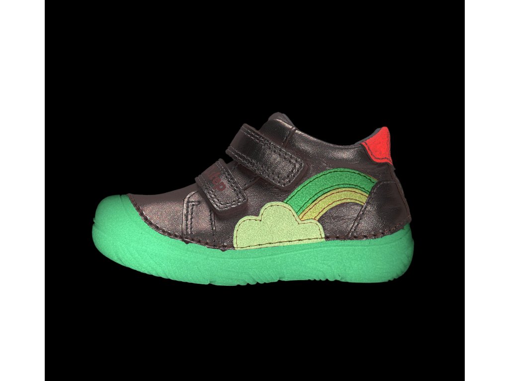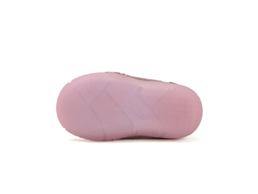 A cipők belsejében kivehető bőr talpbetét található, ortopédiai boltozattámasszal, amely hozzájárul a helyes lábtartáshoz és maximális kényelmet biztosít. A praktikus és gyors egy tépőzáras rögzítés megkönnyíti a felvételt és pontosan illeszkedik a gyermek lábára. Fontos megjegyezni, hogy ez a modell nem barefoot, de klasszikus ortopédiai támogatást nyújt, amelyet a stabilabb cipőt igénylő lábak értékelni fognak.