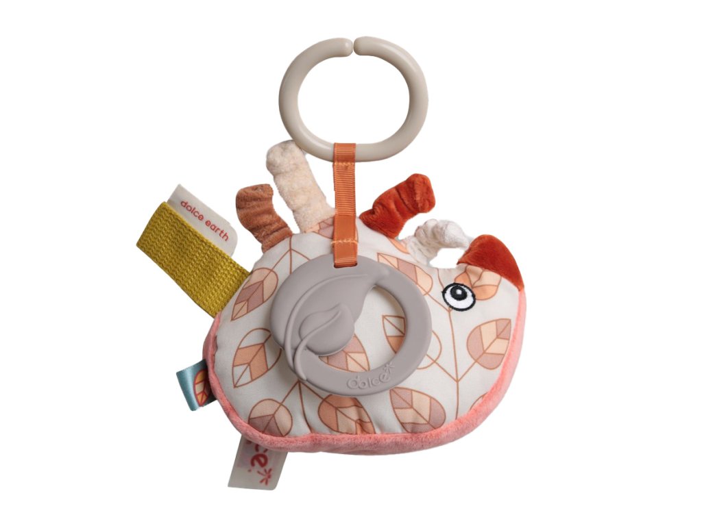 Az Érzékszervi függő játék rágókával Sündisznó szilikon rágókával van ellátva, amely segít a babának megerősíteni az ínyét, és később segít az első fogak áttörésében. A sün egy része babbal van töltve, és az érzékszervi zsinórokkal együtt fejlesztik a tapintást. Például kiságyra vagy babakocsira akasztható.