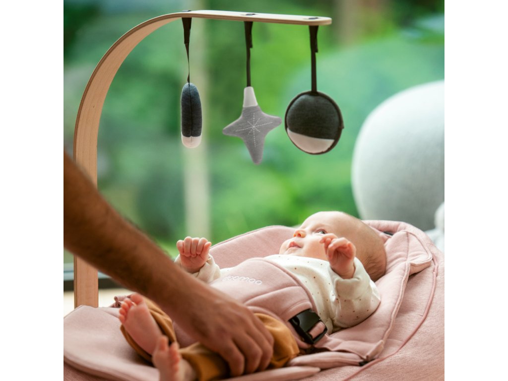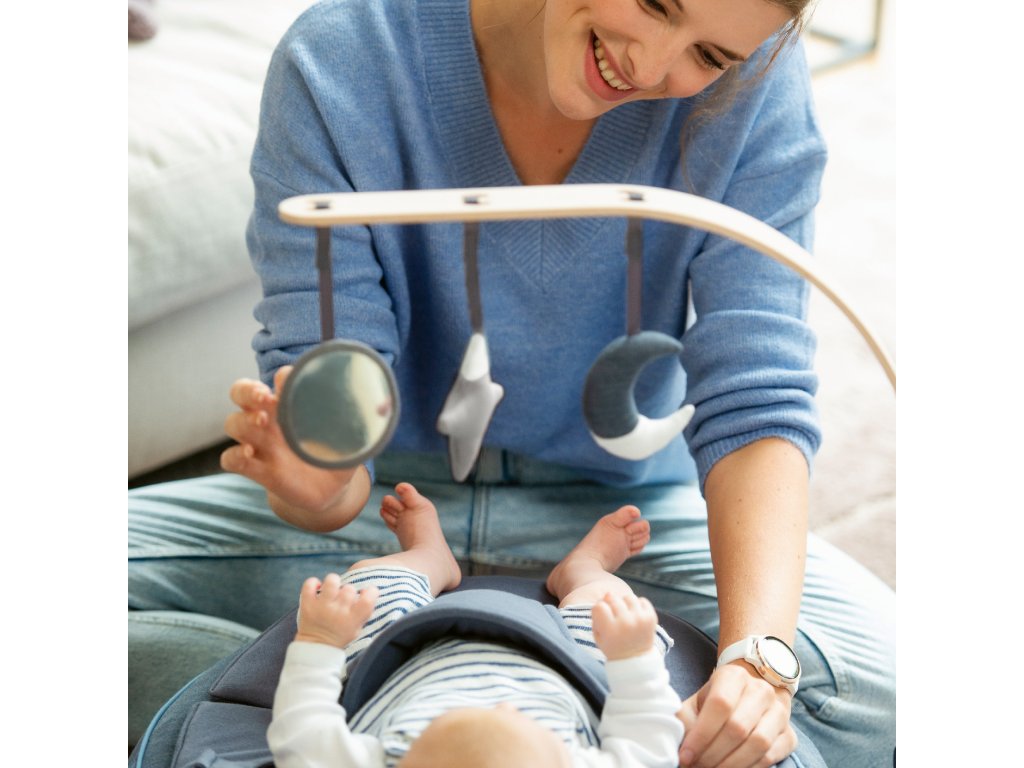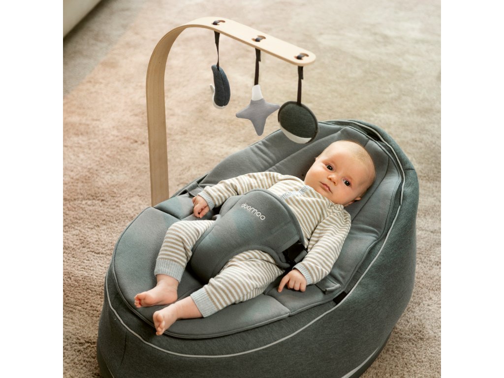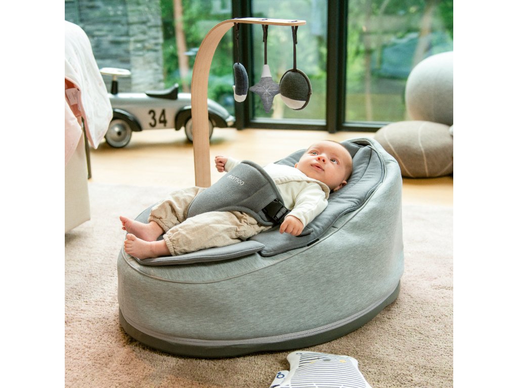 A Seat'n Swing ülőzsákban kényelmesen elhelyezett babája el lesz ragadtatva, és érzékszerveit a játékívre függesztett nagyon puha és szórakoztató játékok serkentik. A kontrasztos világos/sötét színekben pompázó játékok mindegyikét úgy tervezték, hogy felkeltse a gyermek figyelmét. A könnyen használható ív ügyesen rögzíthető az ülőzsákhoz, és ugyanolyan könnyen és gyorsan el is pakolható.