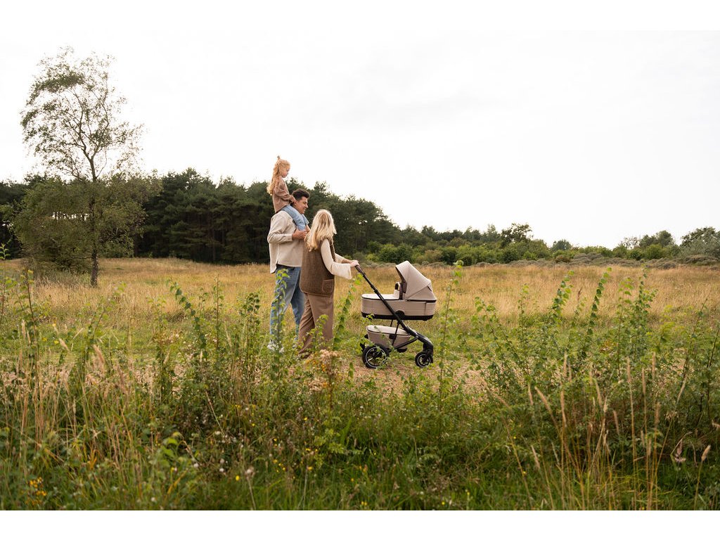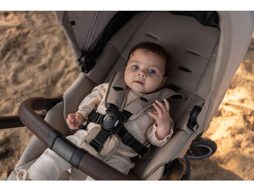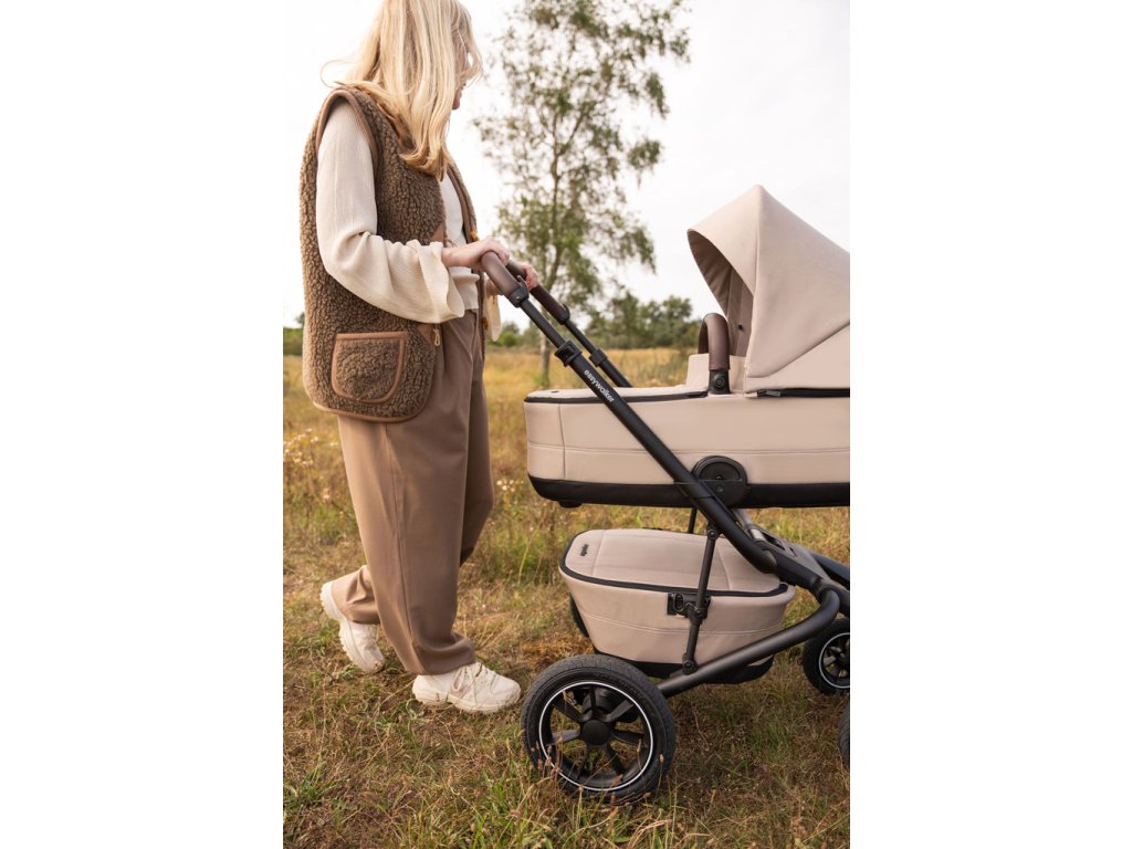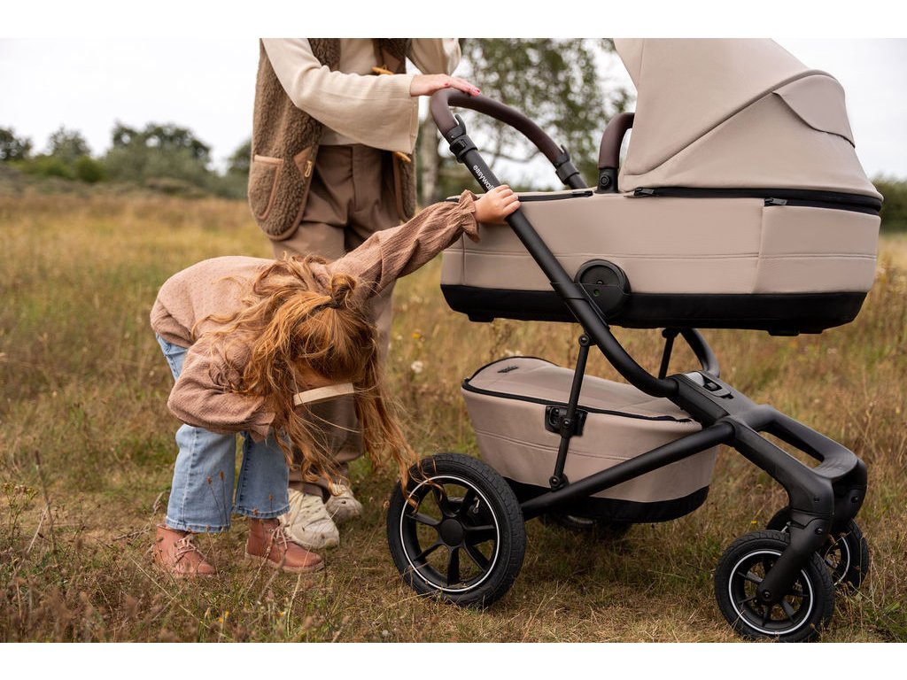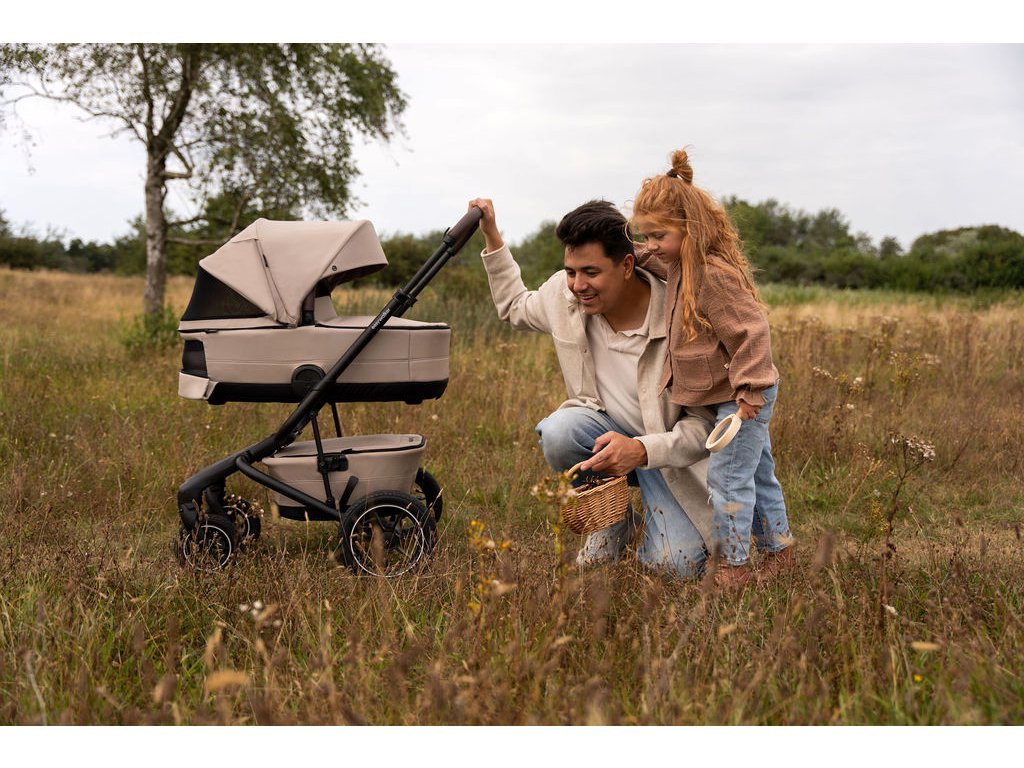 A Jimmey Explore kényelmet biztosít puha párnázott mózeskosárral, dönthető üléssel és állítható fogantyúval. Luxus jellemzői közé tartozik a Tencel™ matrac, a műbőr részletek és az újrahasznosított PET palackokból készült fenntartható szövet. Minden időjárásra felkészítve - kihúzható napellenző, nagy tető és szellőző ablakok, amelyek biztosítják, hogy gyermeke kényelmesen érezze magát, akár hideg, akár meleg van. A levegővel töltött gumiabroncsok elnyelik az ütéseket és az egyenetlenségeket, garantálva a sima és kényelmes utazást még egyenetlen felületen is. A tágas, kivehető bevásárlókosár megkönnyíti az élelmiszerek kirakodását. Ezenkívül a Jimmey könnyedén összecsukható egy kompakt, 12 kilogrammos csomagba néhány másodperc alatt. A Jimmey Explore a tökéletes társad az emlékek megteremtéséhez, miközben felfedezed a világot a babáddal.