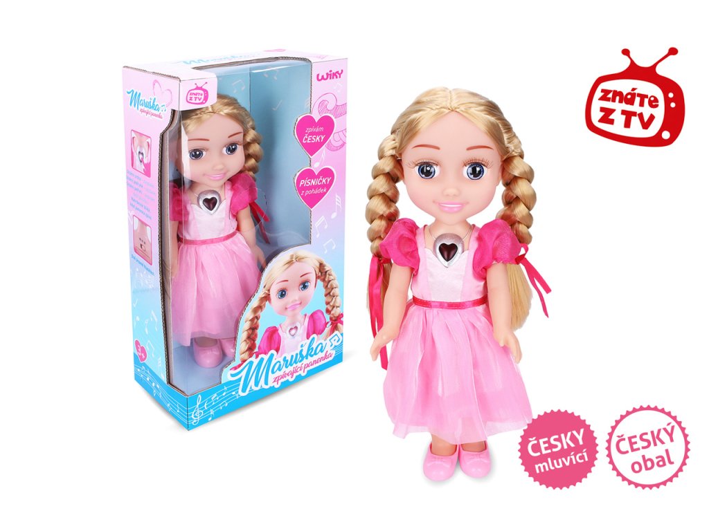 A Maruška baba a legjobb barátnőd lesz, akivel sok mókában és kalandban lesz részed! Énekelj vele mesedalokat, és légy hercegnő! A nyaklánc megnyomásával válassz hét meserészlet közül, és utazz el egy varázslatos világba, ahol a jó legyőzi a gonoszt. A nyaklánc villog, amikor a baba énekel. Lehetőség két hangerőszint kiválasztására. Nyomd meg a Szívet - énekel, nyomd meg másodszor - megáll, nyomd meg harmadszor - újabb dalt énekel. Dalok: Fejlődj, bimbócskám..., Hamupipőke és a három mogyoró..., Talán szerelem lesz..., Szél, szél..., Ha feldíszítem magam..., Szerencse a pokolból..., És a mese vége... . A baba mérete (m): 33 cm. Elem: 3xAAA (a csomag tartalmazza). Nyelv: Cseh. Életkor: 3+