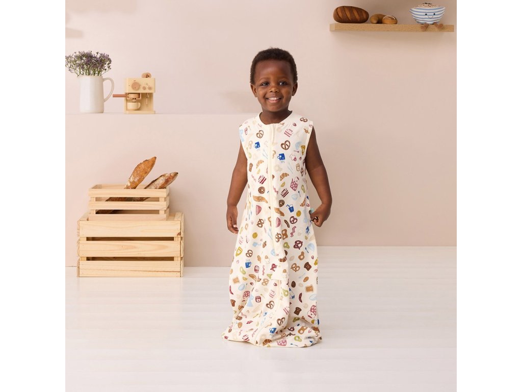 A 0,2 TOG besorolású hálózsák ideális a gyermek melegen tartására éjszaka a 24 °C + hőmérsékletű helyiségekben. A TOG érték azt jelenti, hogy a termék használata esetén nincs szükség további takarókra a kiságyban, ami biztonságos alvási lehetőséget kínál. A szülők biztosak lehetnek abban, hogy a GOTS tanúsítvánnyal rendelkező, légáteresztő organikus pamut segít gyermeküknek egyenletes hőmérsékletet tartani alvás közben, és megakadályozza a túlmelegedést. A rugalmas, organikus dzsörzé ujjak puha anyagból készültek, és 1,0 TOG értékkel rendelkeznek, hogy extra meleget biztosítsanak a hideg éjszakákon. Az ujjak visszahajtható mandzsettákkal és kesztyűkkel vannak ellátva, amelyek melegen tartják az ujjakat és a kezeket is. A szülők a termékhez mellékelt INGYENES szobahőmérővel és az Öltözz fel útmutatóval tájékozódhatnak, és megfelelően aláöltözhetnek, hogy gyermekük melegen legyen.