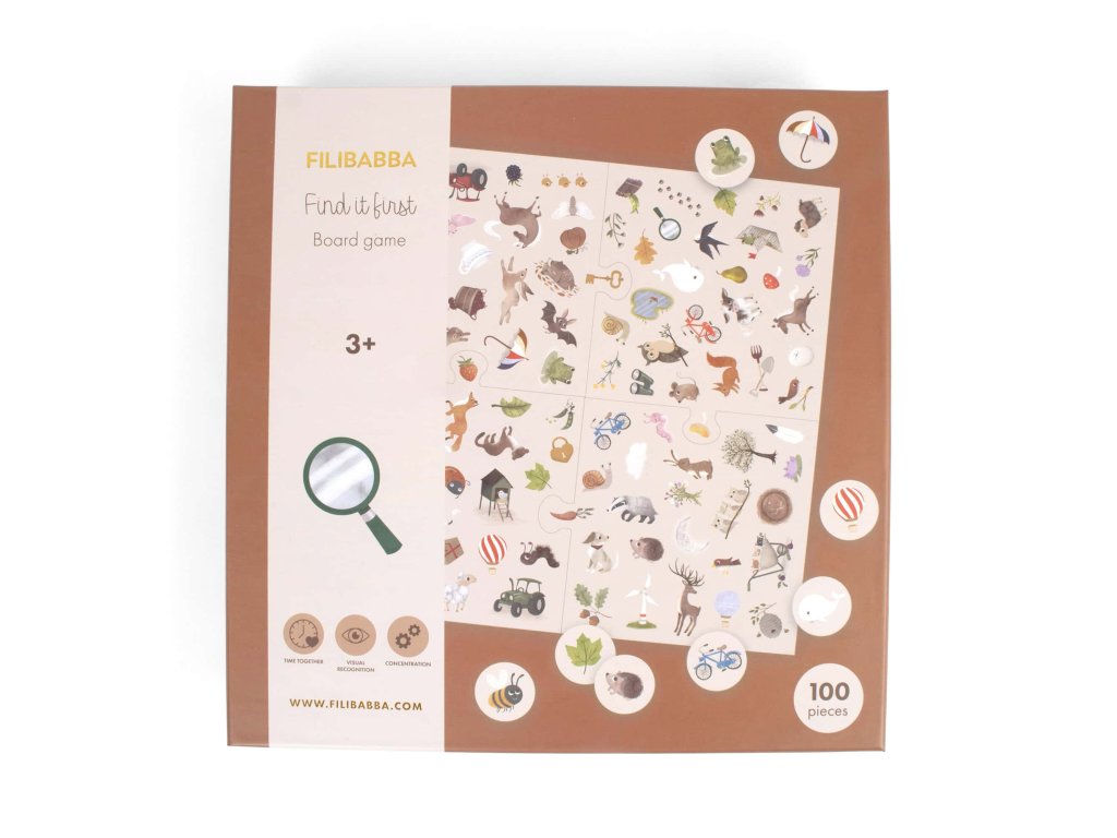 Hívd meg az egész családot a FILIBABBA szórakoztató megfigyeléses játékára, a Ki találja meg elsőként! Ez a lebilincselő játék gyors gondolkodást és éles szemeket ötvöz, miközben a játékosok versengenek, hogy ki találja meg először az egyező lapkákat a játéktáblán. A 100 gyönyörűen illusztrált lapkával a népszerű FILIBABBA állatokkal és motívumokkal, a játék nevetést és baráti versengést hoz közvetlenül az asztalhoz.