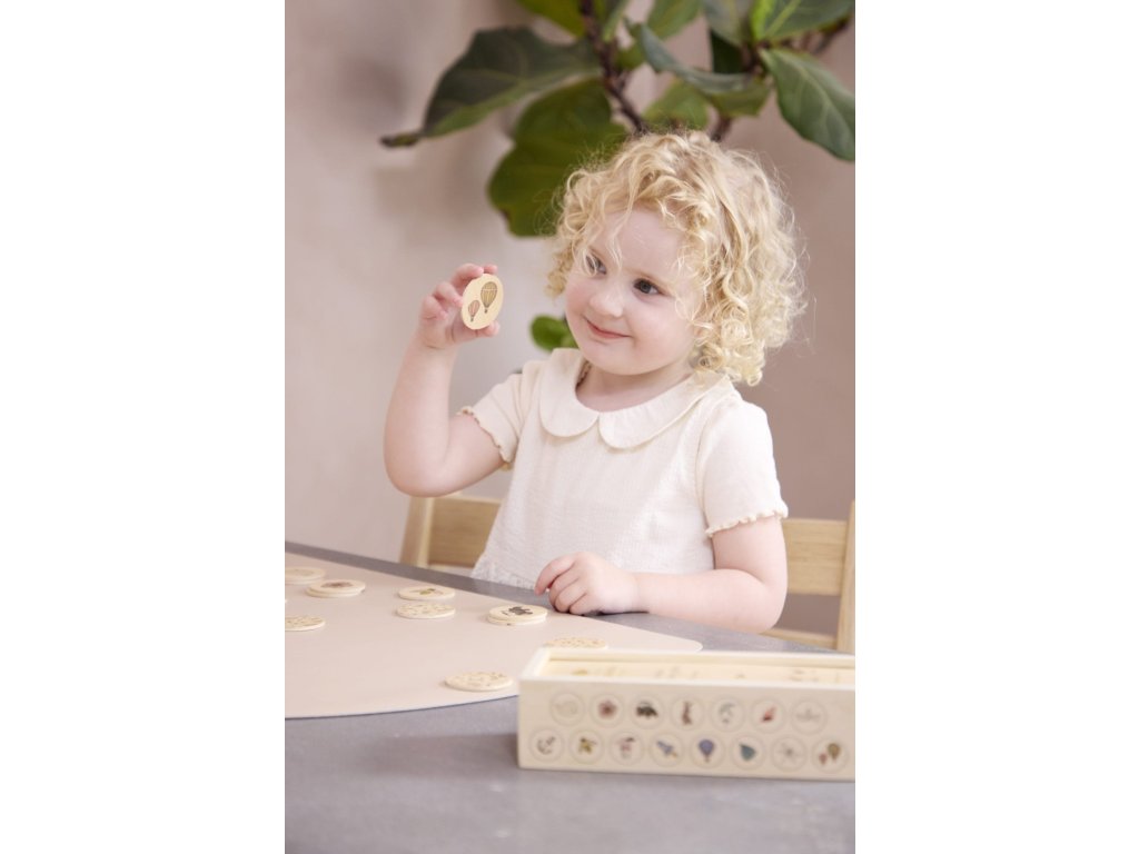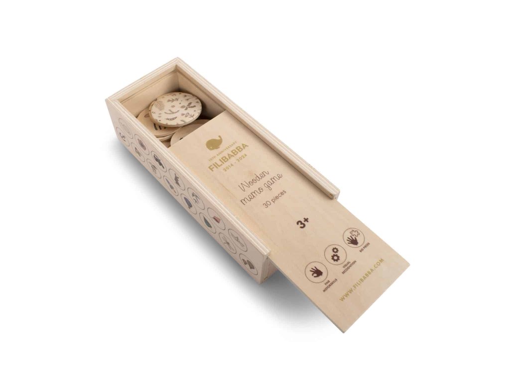 Játszhatunk még egy kört? Fejlessze gyermeke memóriáját, felismerését és koncentrációját – mindezt szórakozás közben. A limitált kiadású memóriajáték erős rétegelt lemezből készült, és 30 darabot tartalmaz a FILIBABBA legnépszerűbb nyomatainak gyönyörű elemeivel, amelyek biztosan felkeltik a kicsik és nagyok kíváncsiságát. A prémium játék, amelyre emlékezni fogsz, kiváló minőségű tárolásra alkalmas fadobozban kerül forgalomba.