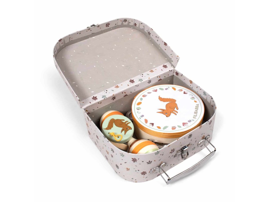 Ennek az aranyos kis bőröndnek és a benne rejlő hangszerek formájában lévő játékoknak köszönhetően gyermeke új hangokat és ritmusokat fedezhet fel, miközben fejleszti finommotoros készségeit.
