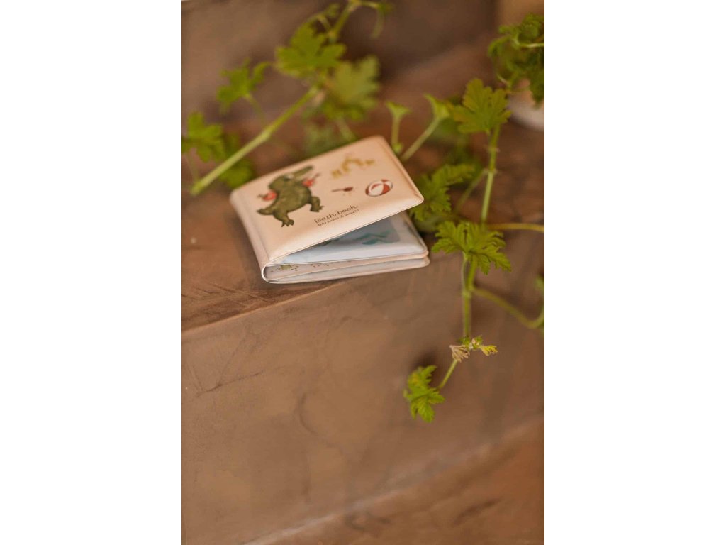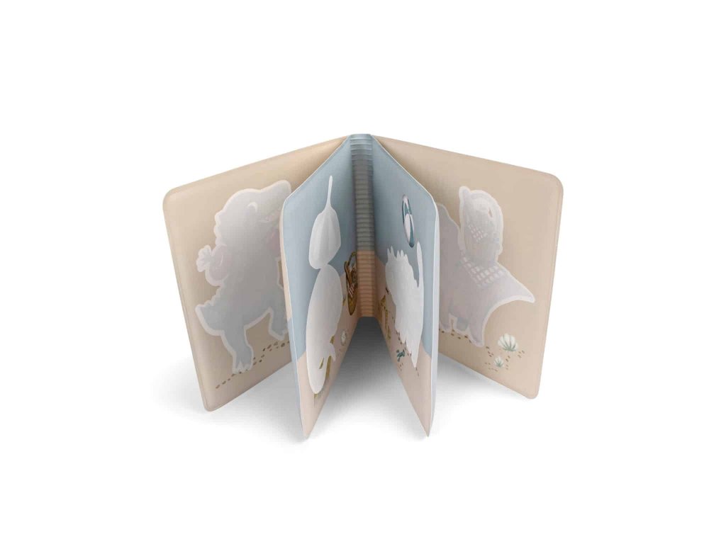 A fürdőkönyv nyolc oldalas, és puha EVA habból készült. Könnyen megfogható a kis kezekben, és a ragacsos ujjlenyomatok és puszik könnyen letörölhetők. A könyv hat hónapos kortól alkalmas.
