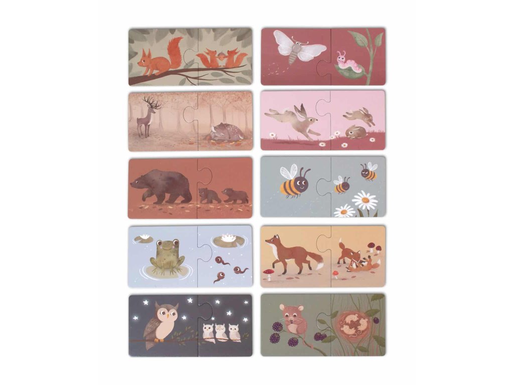 Az északi állatok szüleinek és kölykeinek képeivel ellátott új puzzle készletünk tíz puzzle kártyát tartalmaz két nagy darabbal.