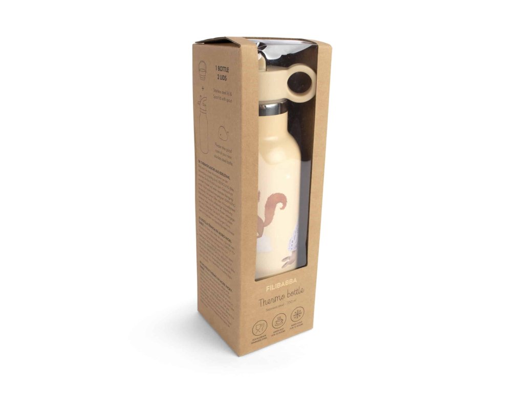 Két cserélhető kupakkal érkezik – egy klasszikus csavaros a biztonságos szállításhoz, és egy beépített szívószállal ellátott kupak az útközbeni könnyű iváshoz. Rozsdamentes acélból készült, italokat akár 12 órán át melegen vagy hidegen tart, és csak kézi mosogatást igényel.