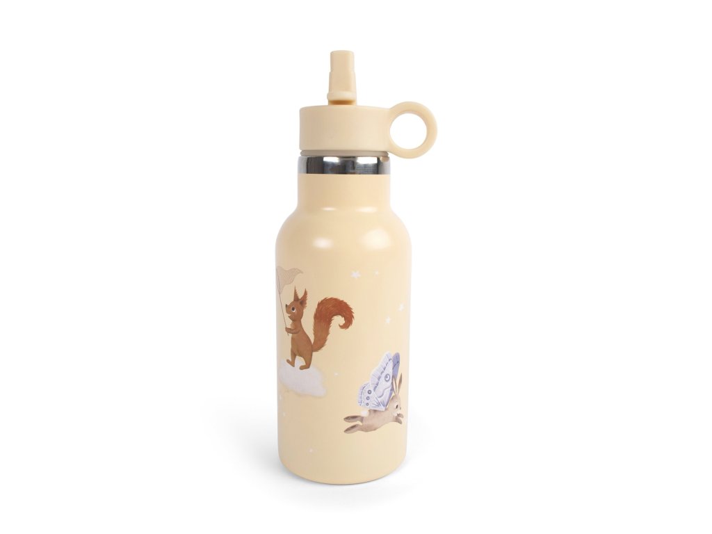 A Star Catchers rozsdamentes acél kulacs 350 ml űrtartalommal és két cserélhető kupakkal (szívószálas vagy csavaros) akár 12 órán keresztül melegen vagy hidegen tartja az italokat, és ideális mindennapi kalandokhoz gyerekeknek és felnőtteknek egyaránt.